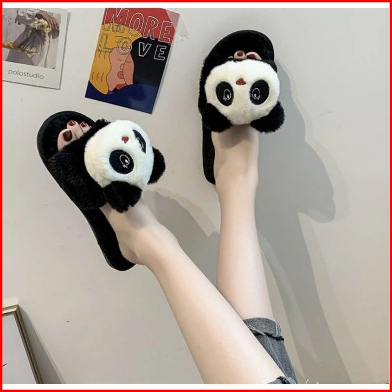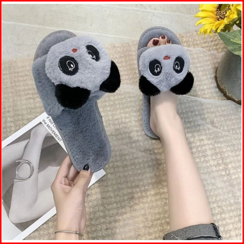Cfw Sandal Selop Bulu Boneka Panda Size 36-40