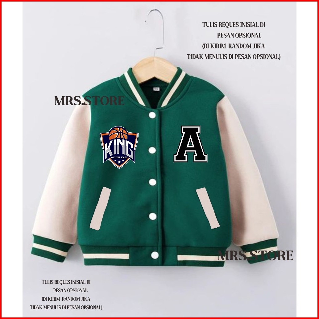 Jacket Baseball Varsity Anak Laki Laki Perempuan King Umur 2 3 4 5 6 7 8 9 10 11 12 Tahun Full Sablon Dtf Premium Jacket
