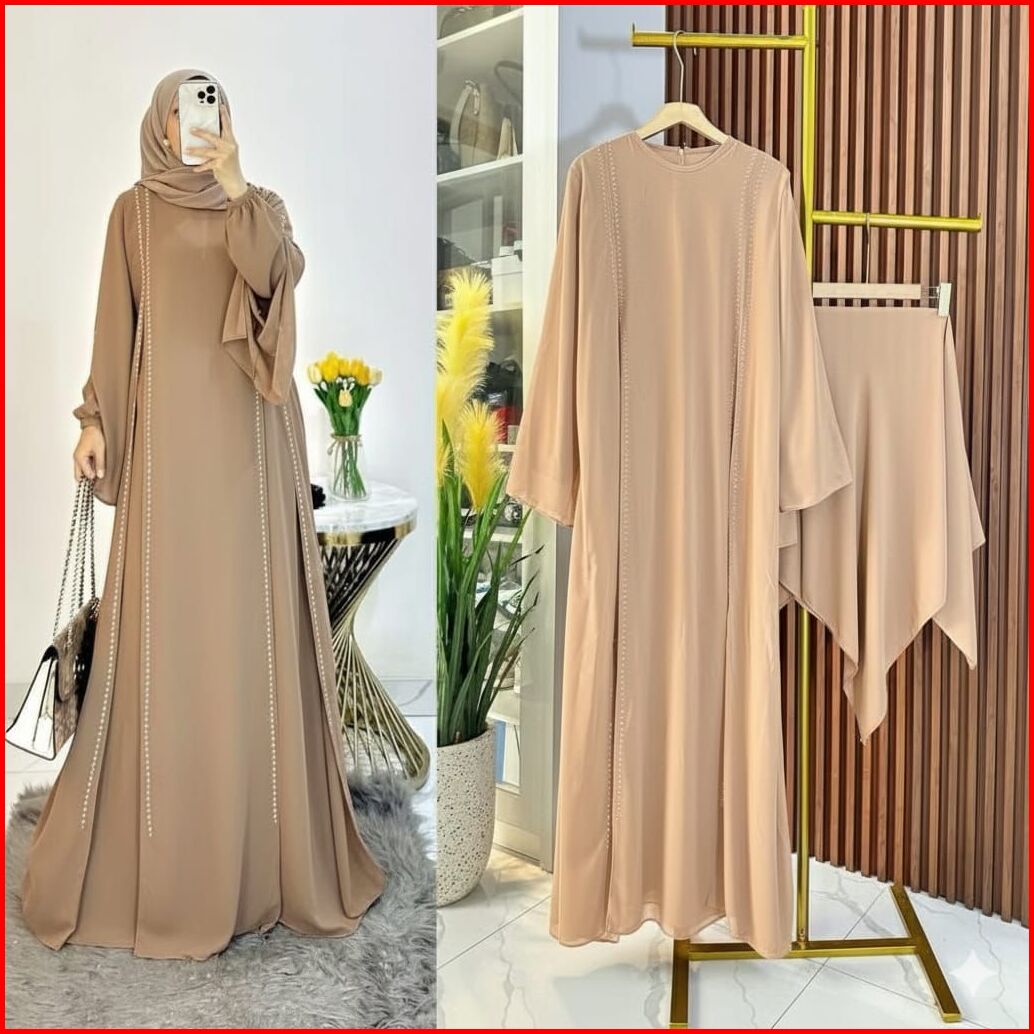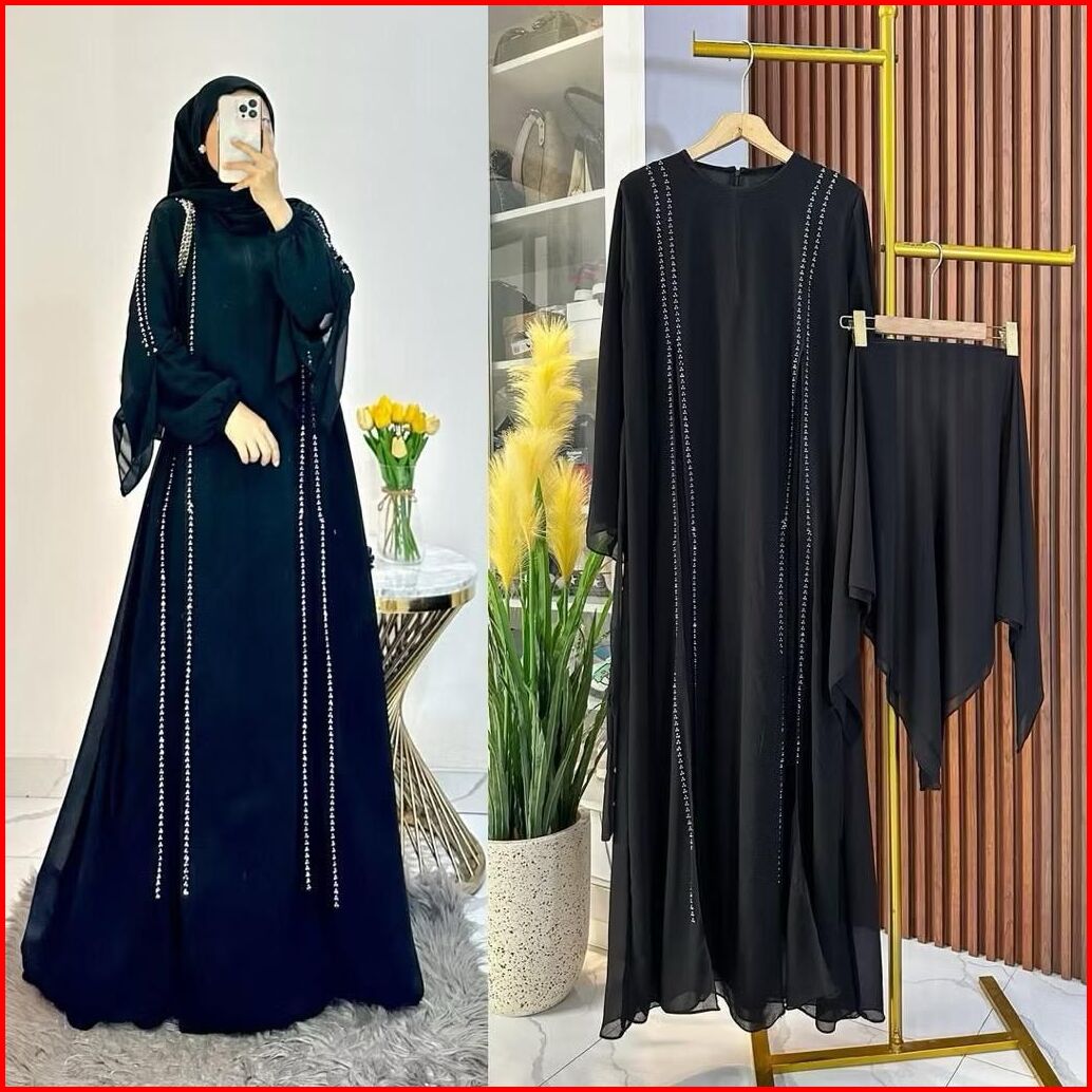 Luna Abaya Bahan Ceruty Babydoll Full Furing Hijab Variasi Swarovski Abaya Wanita Muslimah Lebaran