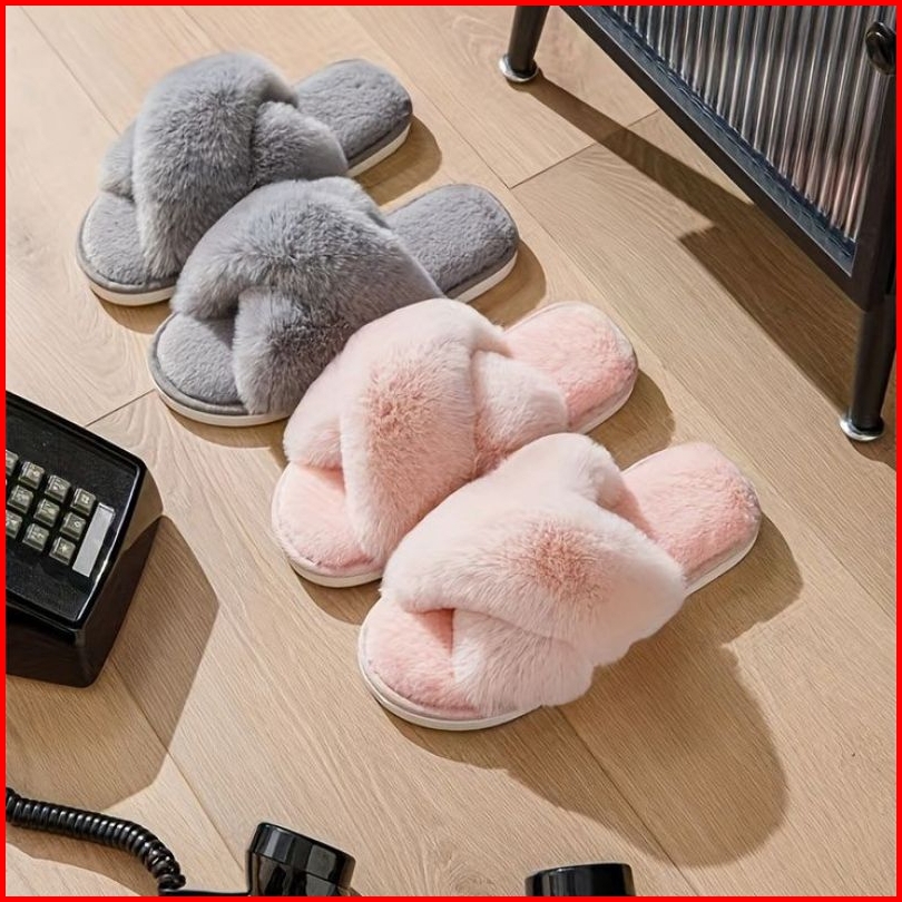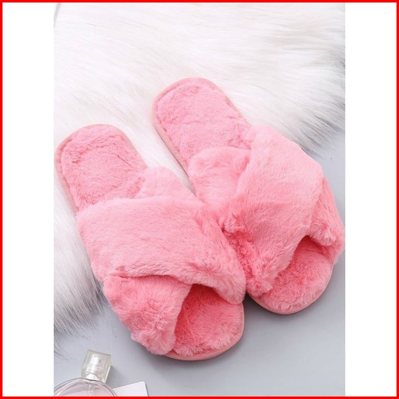 Sandal Rumah Bulu Korea Tebal Halus Model Silang