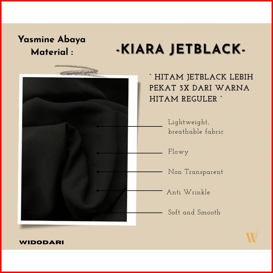 Widodari - Yasmine Abaya Jet Black Double Stitch Abaya Umroh Harian Material Premium
