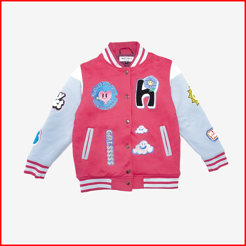 Jaket Varsity Anak Cowok Cewek Full Bordir Bahan Cotton Fleece Ukuran S - 3xl Usia 3-14th Jaket Varsity Anak Highest Kid