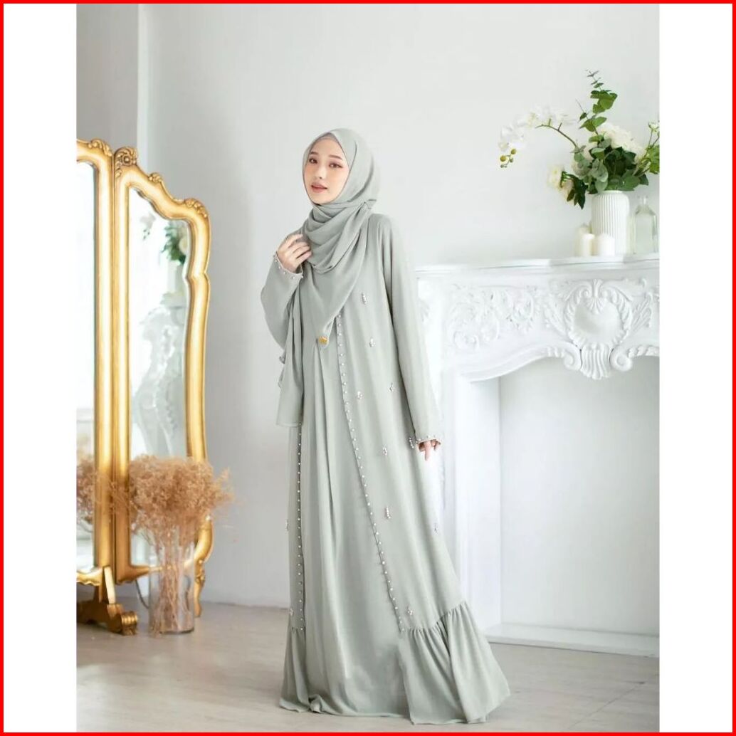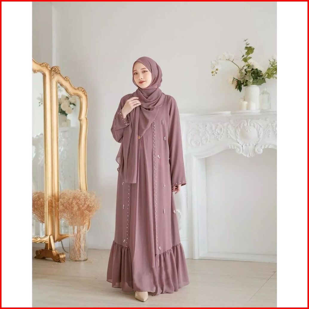 Abaya Syahira Set Wanita Matt Ceruty Babydoll Aplikasi Payet Mutiara Model Inner Outer 2layer Bisa Lepas Pasang Kf
