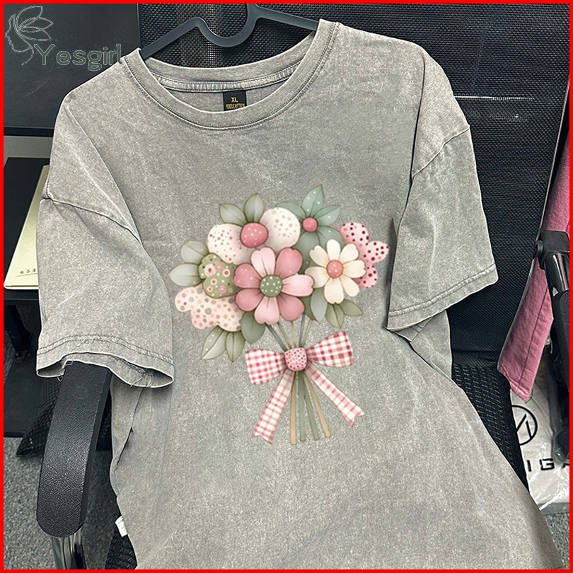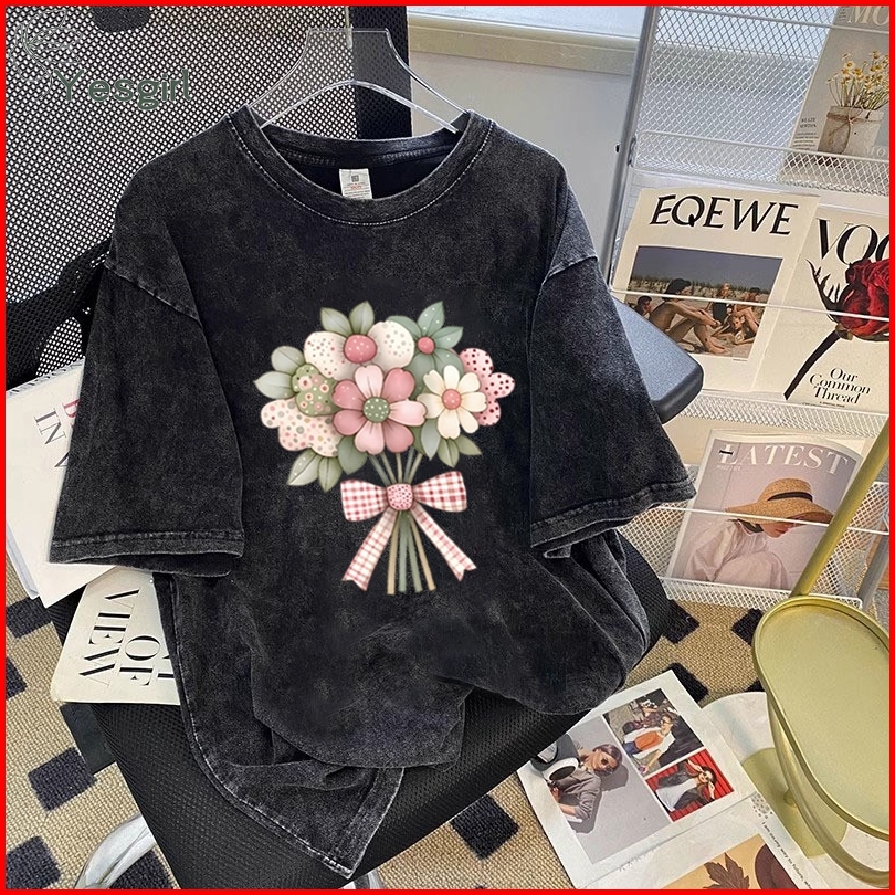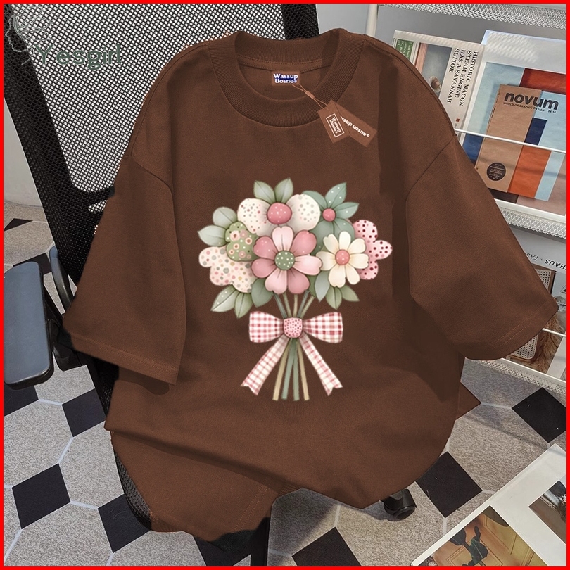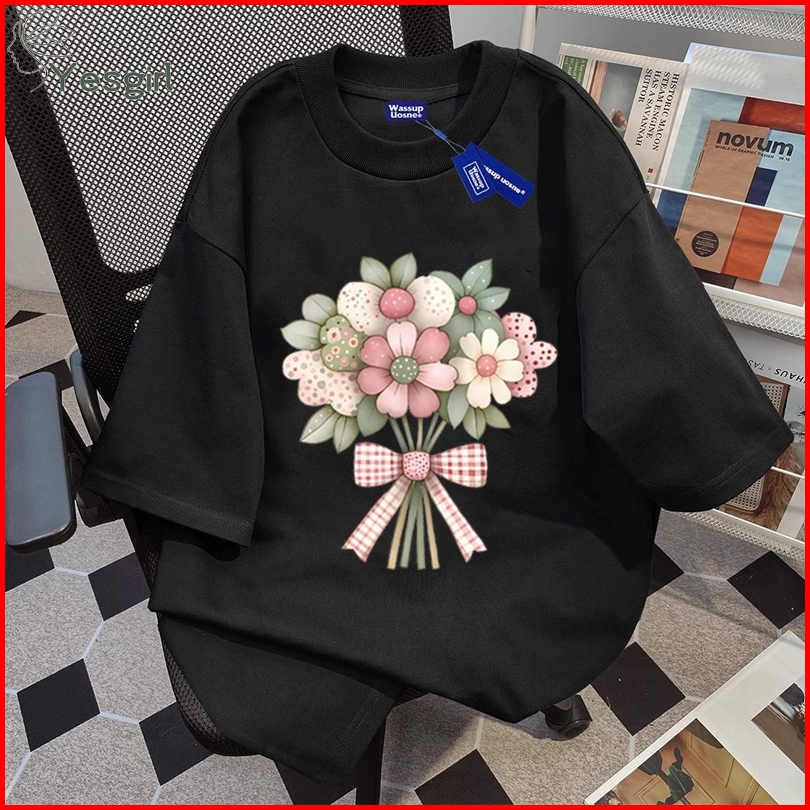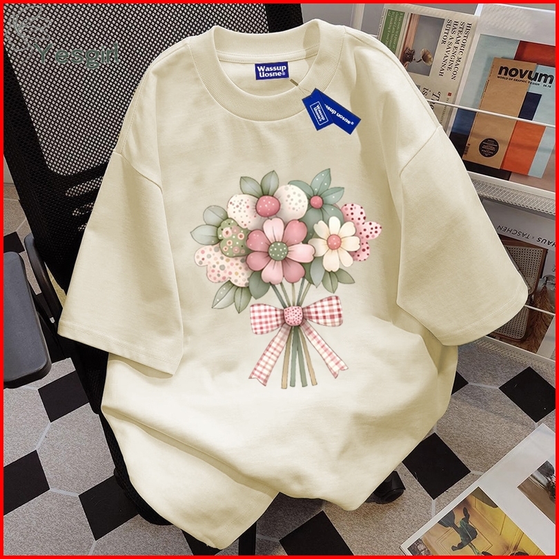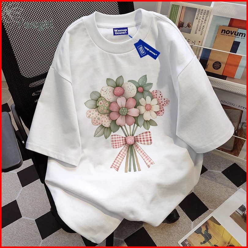 Yesgirl Korea Style Buket Print Kaos Kasual Longgar Atasan Wanita Kekinian Kaos Oversized Baju Atasan Wanita Terbaru 100