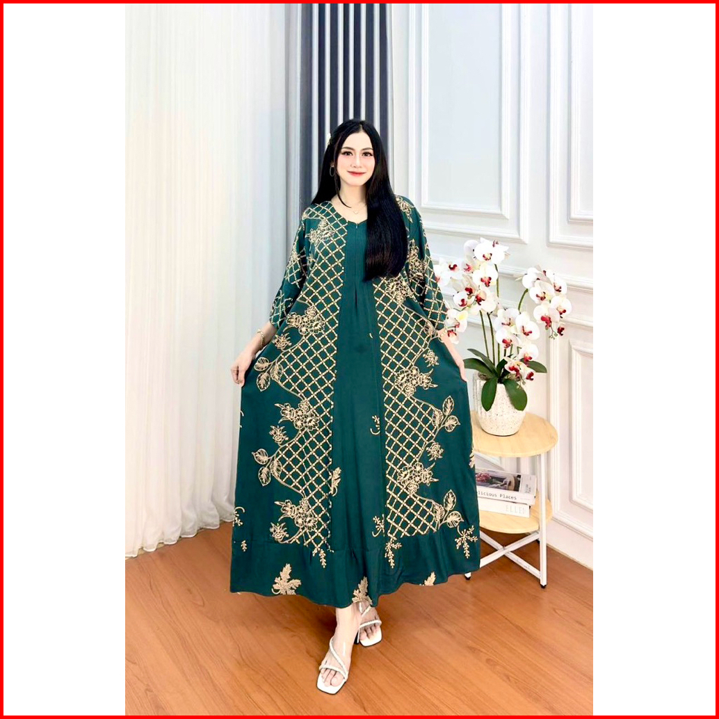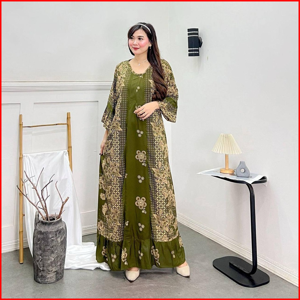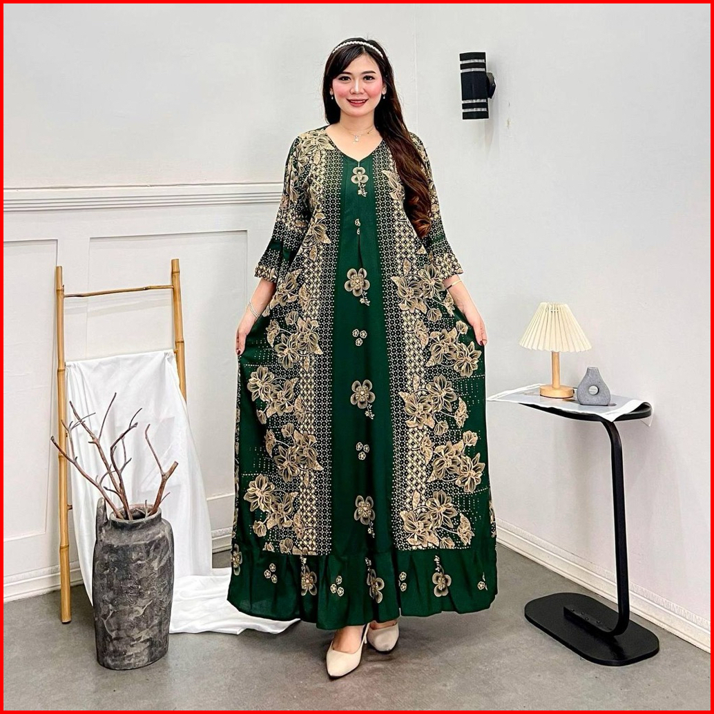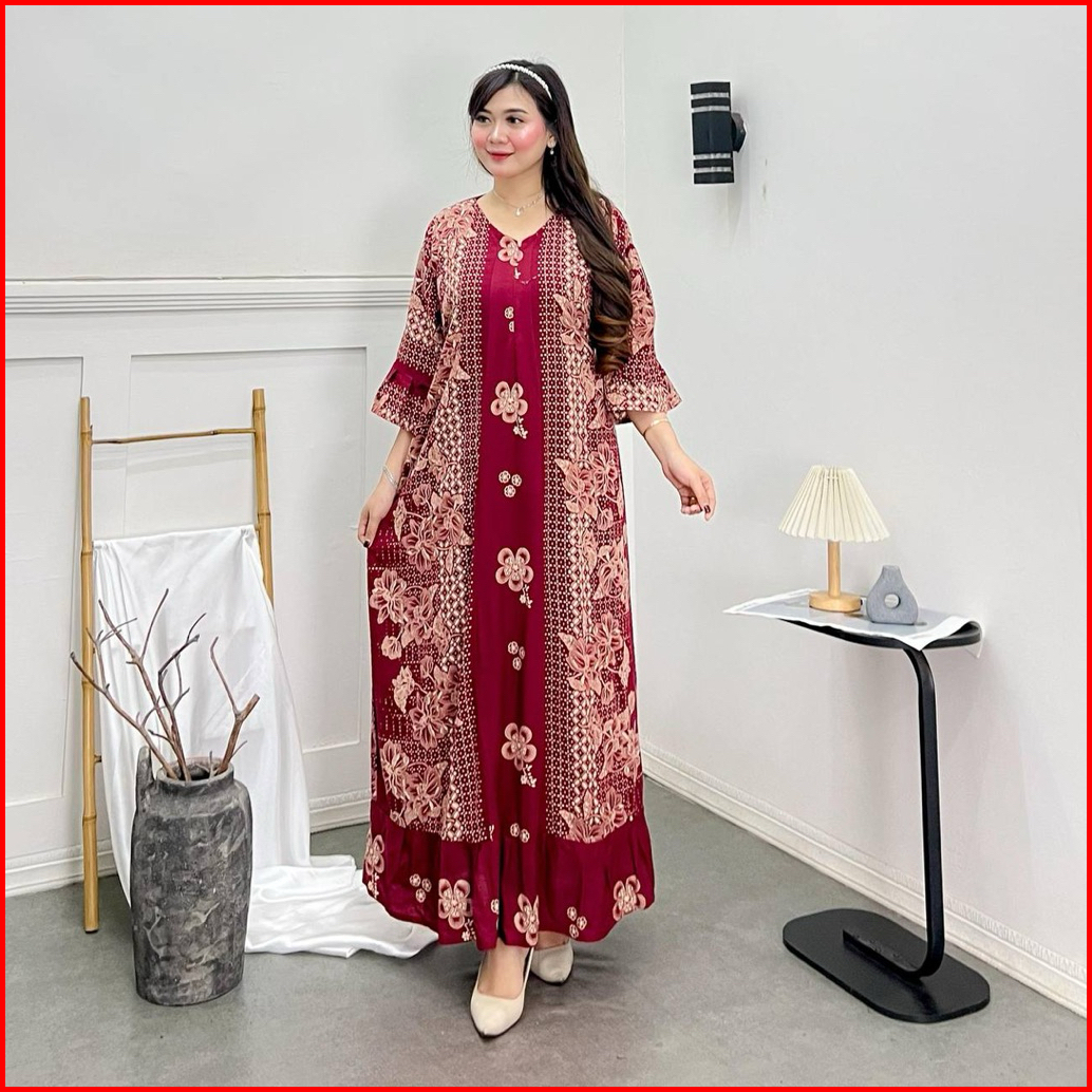 Dres Selvi Melati Kombinasi Polka Super Jumbo Gamis Lengan 7 8 Rayon Tebal Ld 130cm Muat Bb 100kg