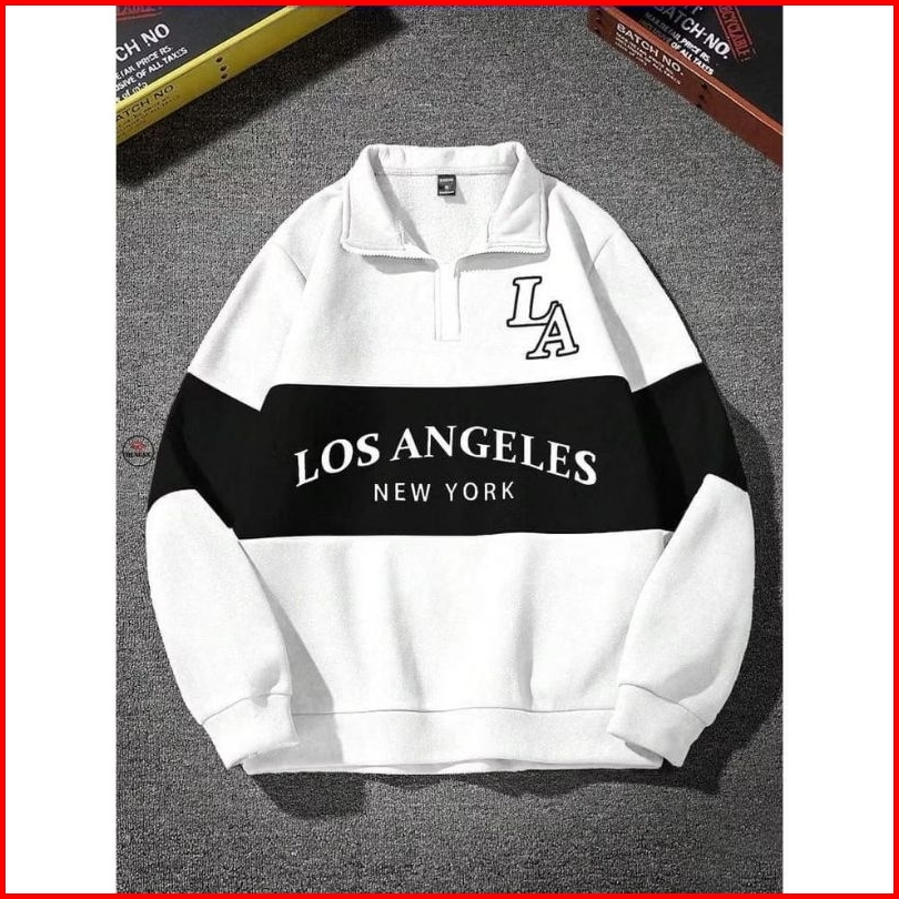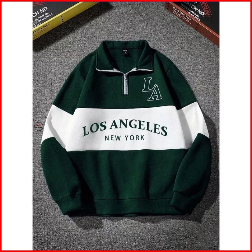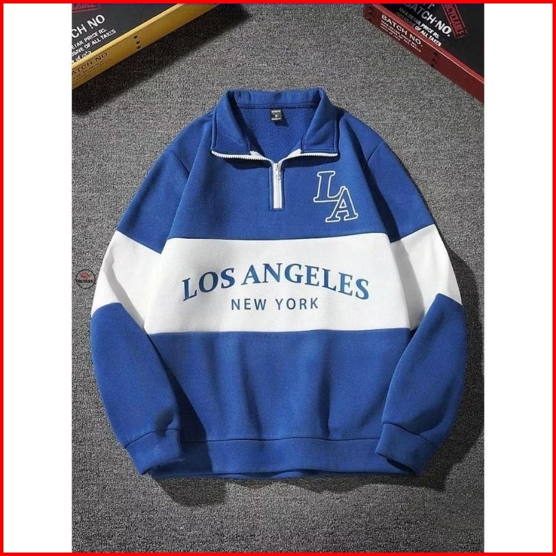 Sweater Rugby Halfz Zipper Stripe Sweater Crwneck Losangles Pria Wanita