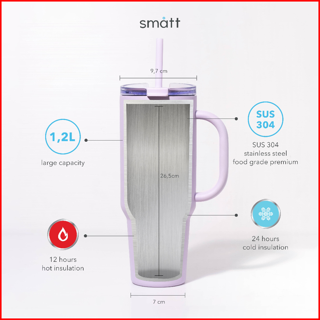 Smatt Double Insulation Jug - Tumbler 1.2l Stainless Termos Botol Minum 1200ml - Baby Blue