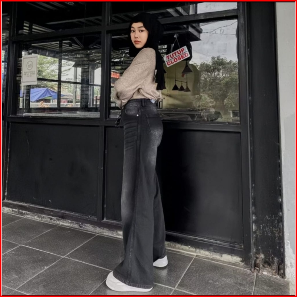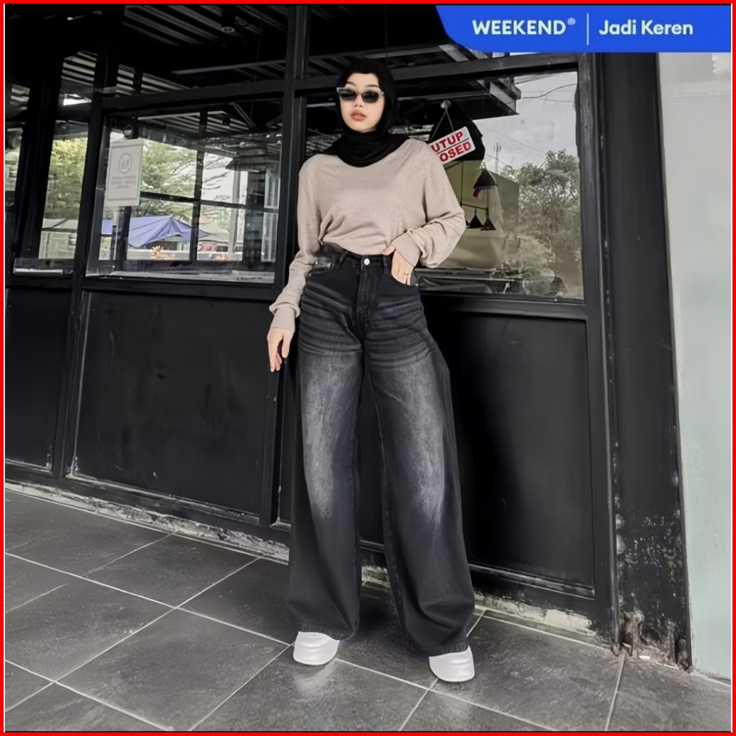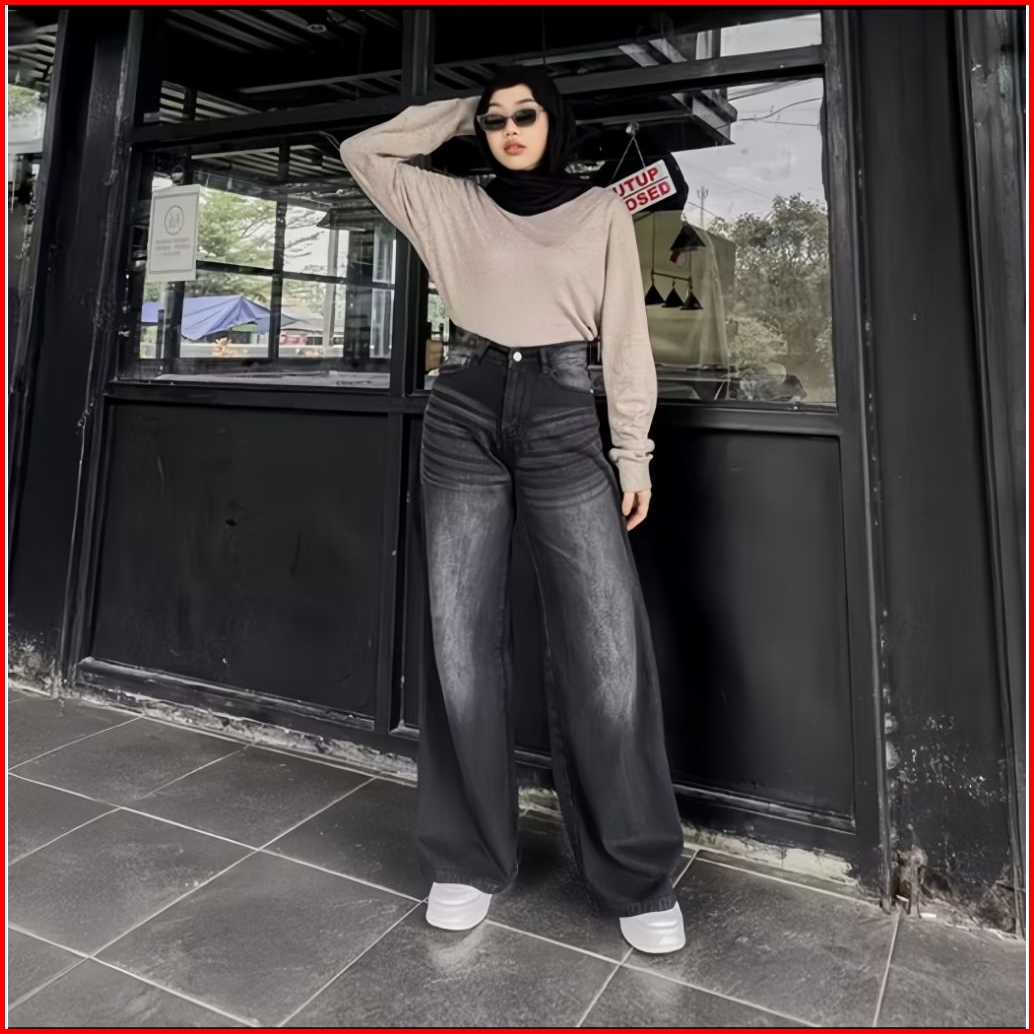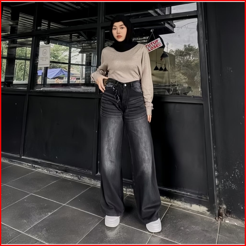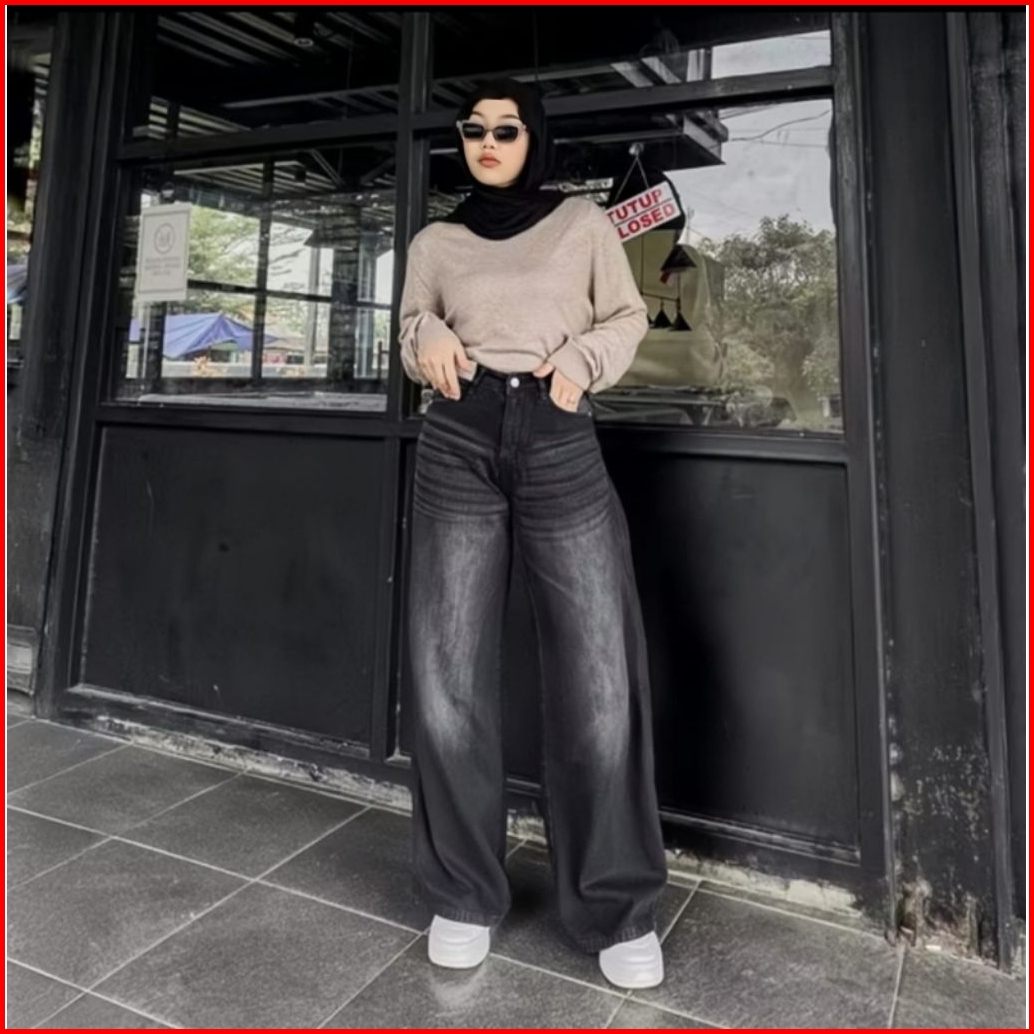 Celana Jeans Whisker Gombrong Highwaist Baggy Pants Hangover Wid Leg Oversize Korean Style Terlariss
