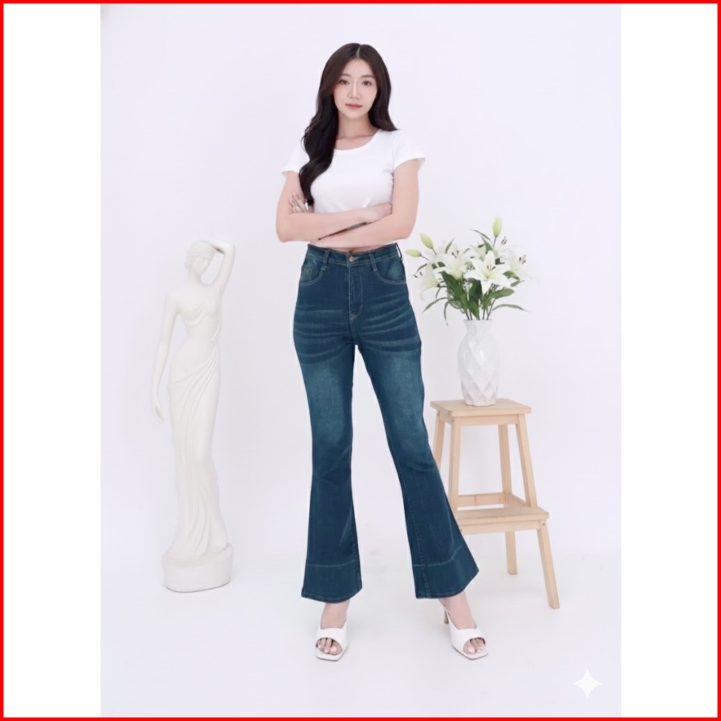 Onstyle Cutbray Jeans Higwaist Lipat Besar Jeans Strech Kekinian Wanita Tinggi Terbaru