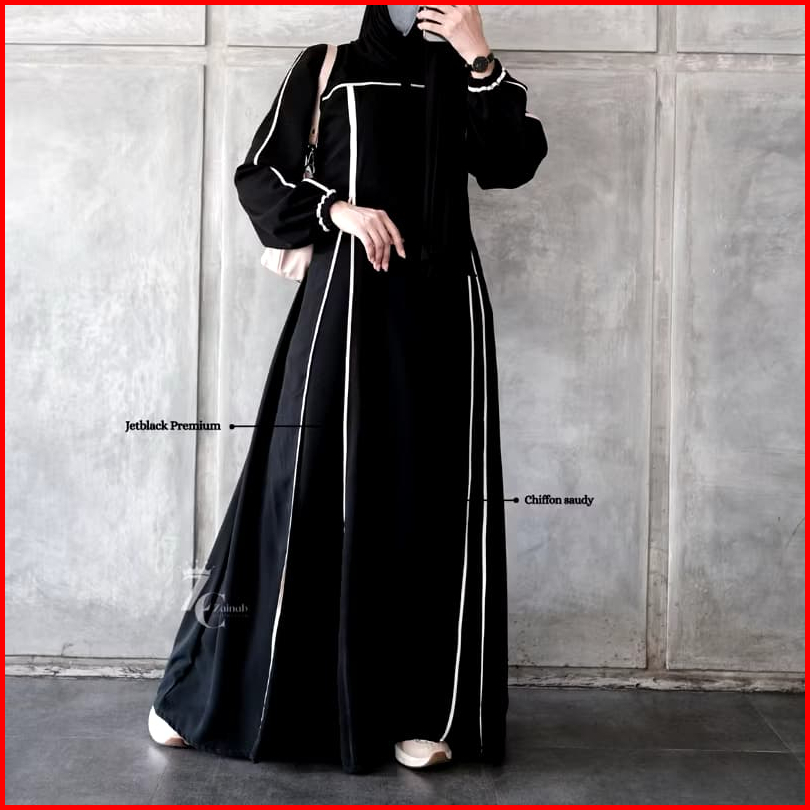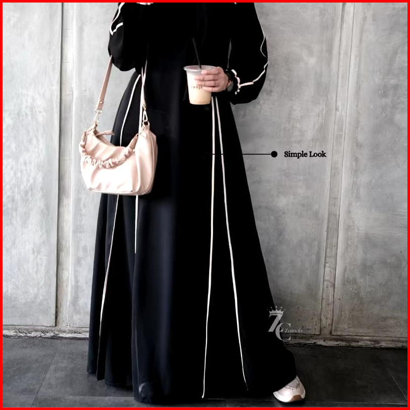 New Abaya Khadijah Hitam Turkey Gamis Syari Muslimah Bahan Jetblack Hitam Kombinasi List Pita.