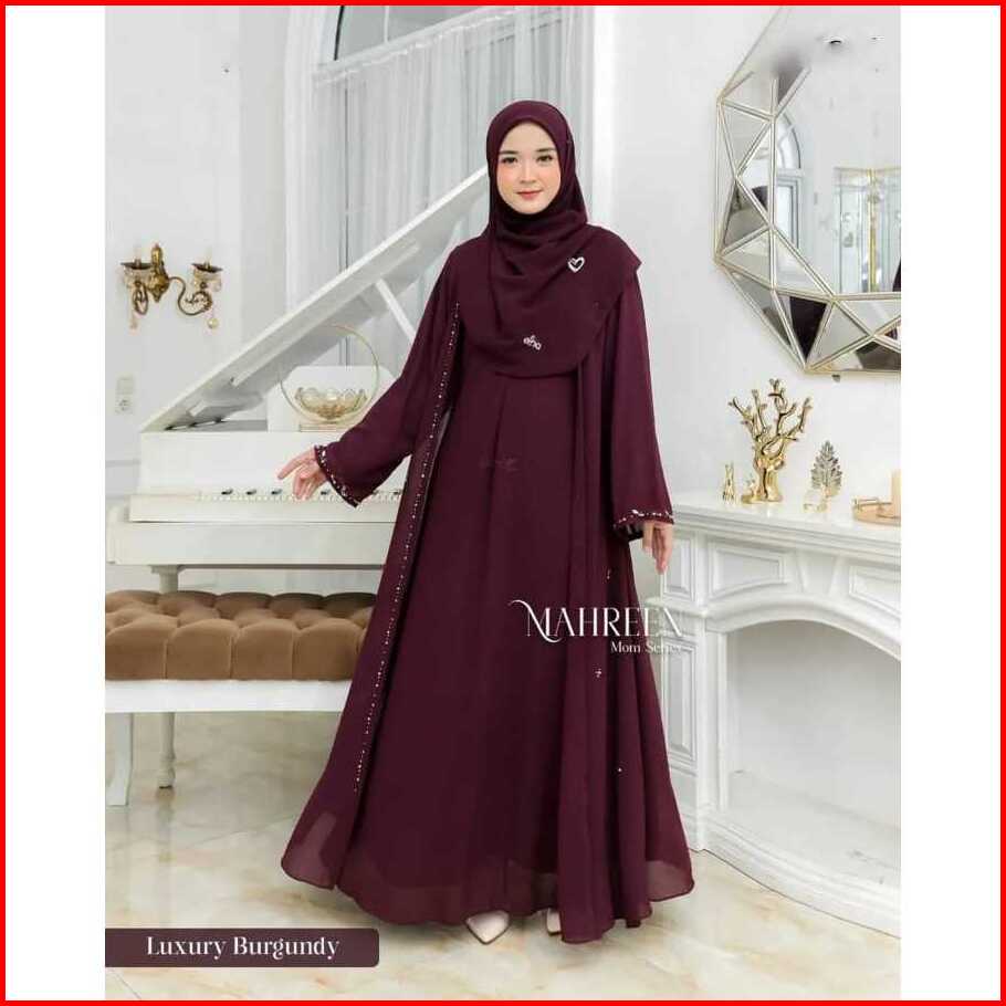 Mahreen Abaya Dress Gamis Abaya Ceruty Babydoll Full Puring Plus Aksen Payet Mutiara Gamis Muslim Gamis Umroh Terbaru Ga