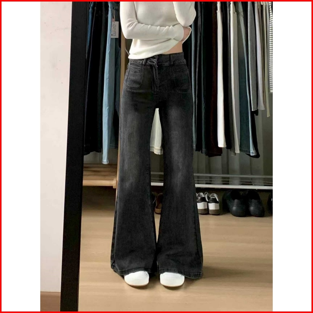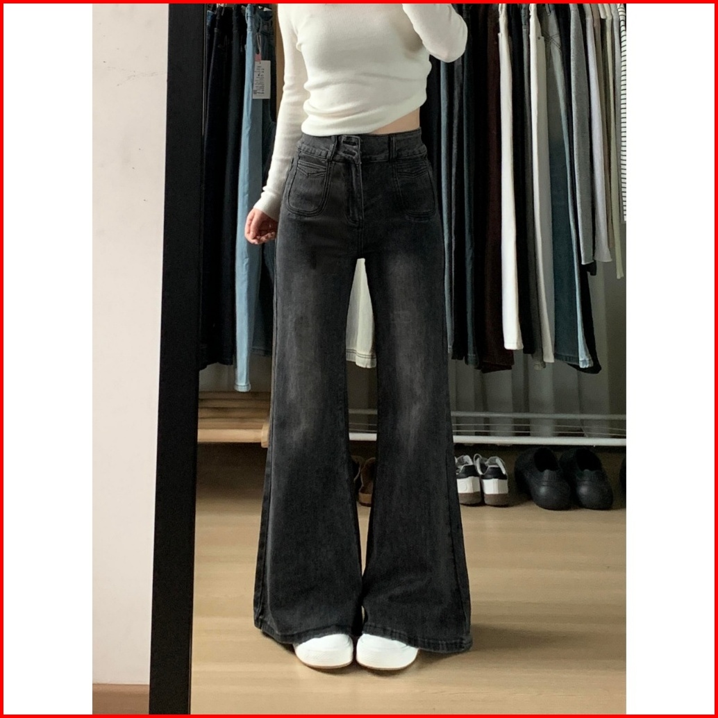 Lulu Abu Abu High Waist Kuolt Celana Jeans Panjang Wanita--baggy Jeans Wanita