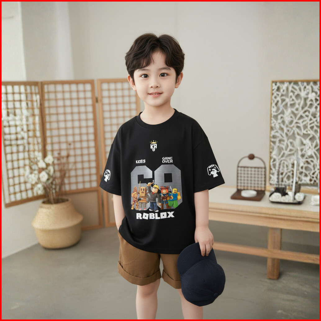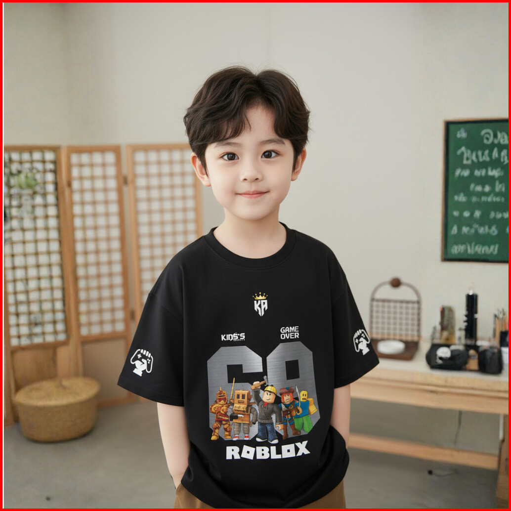 Kaos Roblox Anak Laki-laki Hitam Katun Adem Premium Usia 1-8 Tahun Baju Anak Cowok Fashion Terbaru 2025 Kaos Gaming Anak