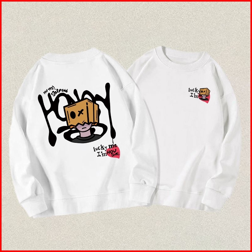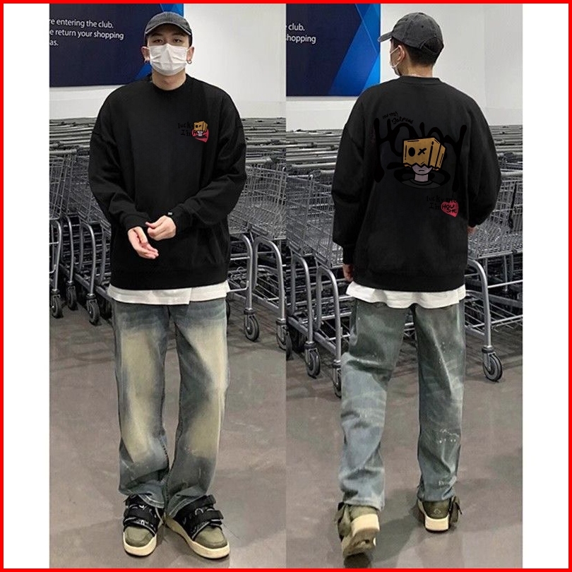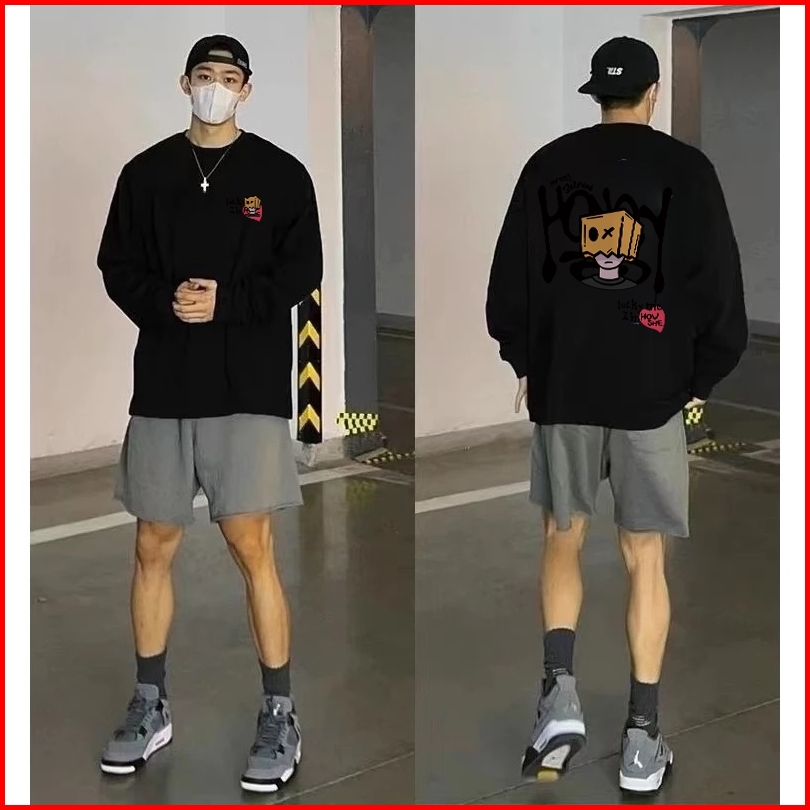 Renelle Sweater T Shirt Pria Grafiti Trendi Kartun Gaya Jalanan Oversize Casual Baju Cowok Keren Lengan Panjang Crewneck