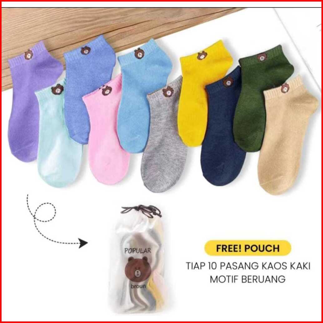 10 Pasang Free Pouch 10 Pasang Kaos Kaki Bear Free Pouch Kaos Kaki Beruang Pendek 10 Pasang Mix Warna