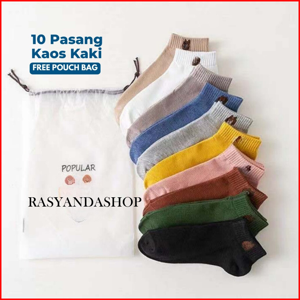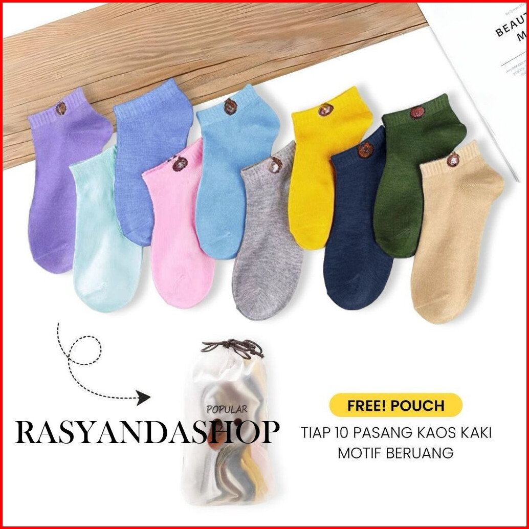 10 Pasang Kaos Kaki Beruang Free Pouch Kaos Kaki Beruang Pendek 10 Pasang Mix Warna