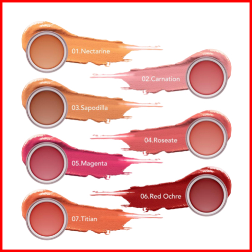 01. Nectarine, 02. Carnation, 03. Sapodilla, 04. Roseate, 05. Magenta, 06. Red Ochre, 07. Titian
