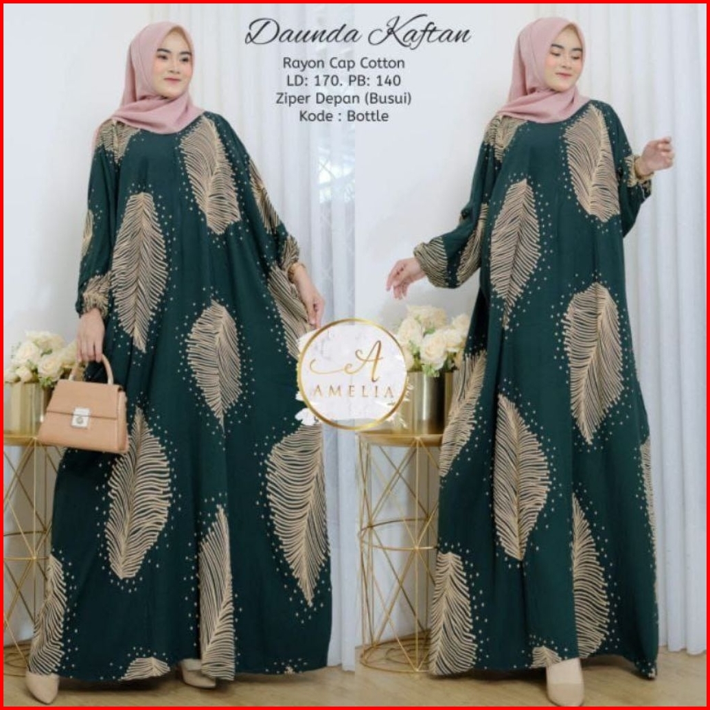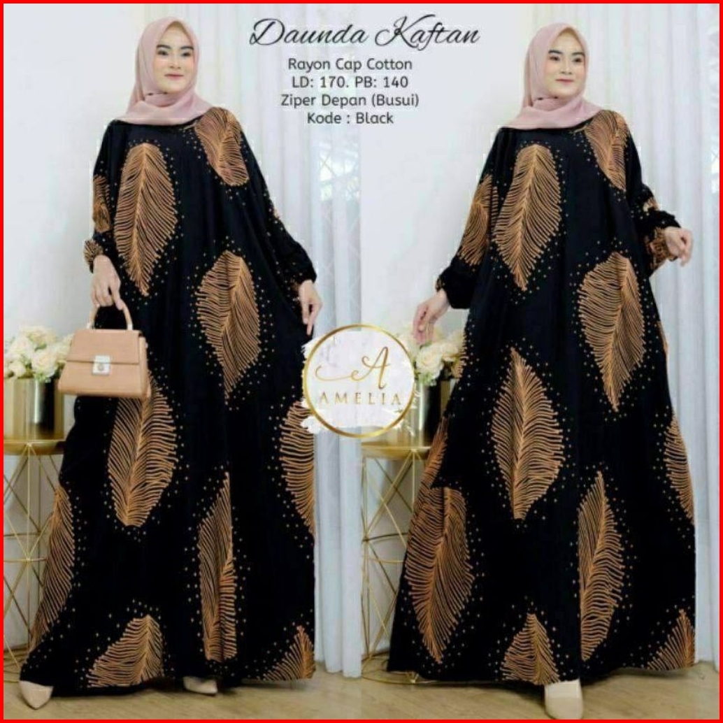 Kaftan Daunda Premium Rayon Super Jumbo Daster Panjang Muslim Wanita Adem Cocok Untuk Dirumah Atau Untuk Pengajian