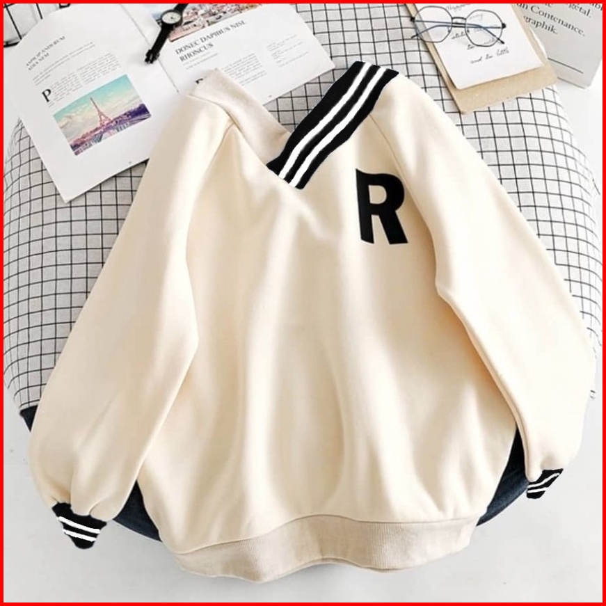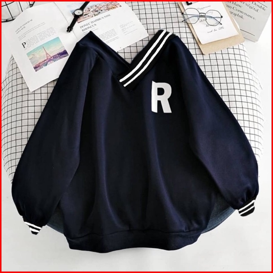 Vneck Sweater R - Baju Wanita Terbaru - Oversize Sweatshirt