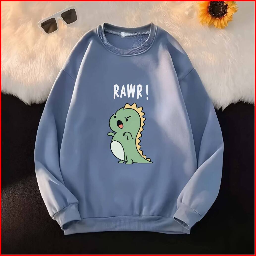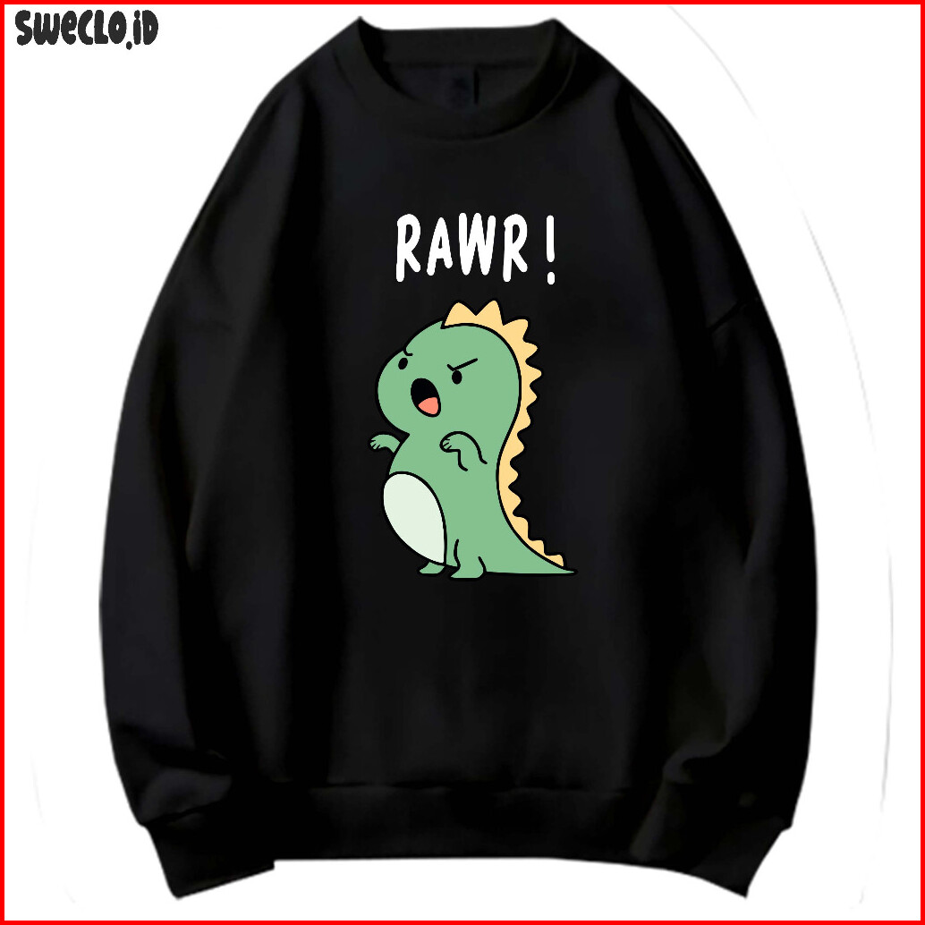 Crewneck Sweater Jyb Oversize Rawr Dino Sablon Size M-xxl Pria Wanita