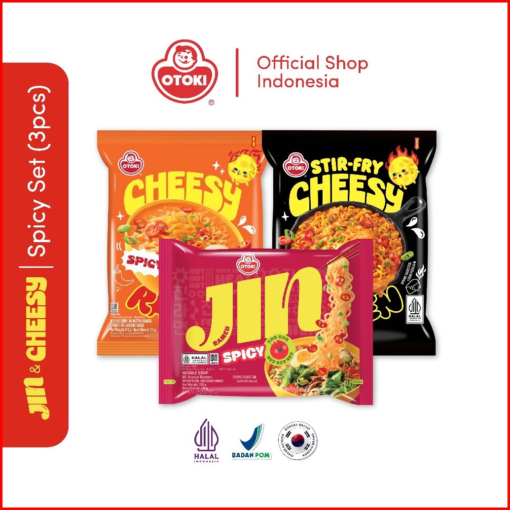Otoki Halal Spicy Package Jin Ramen Spicy Cheesy Ramen Spicy Stir Fry Chessy Ramen Spicy