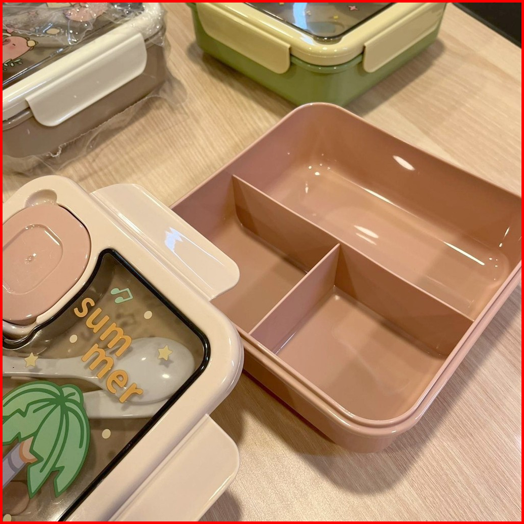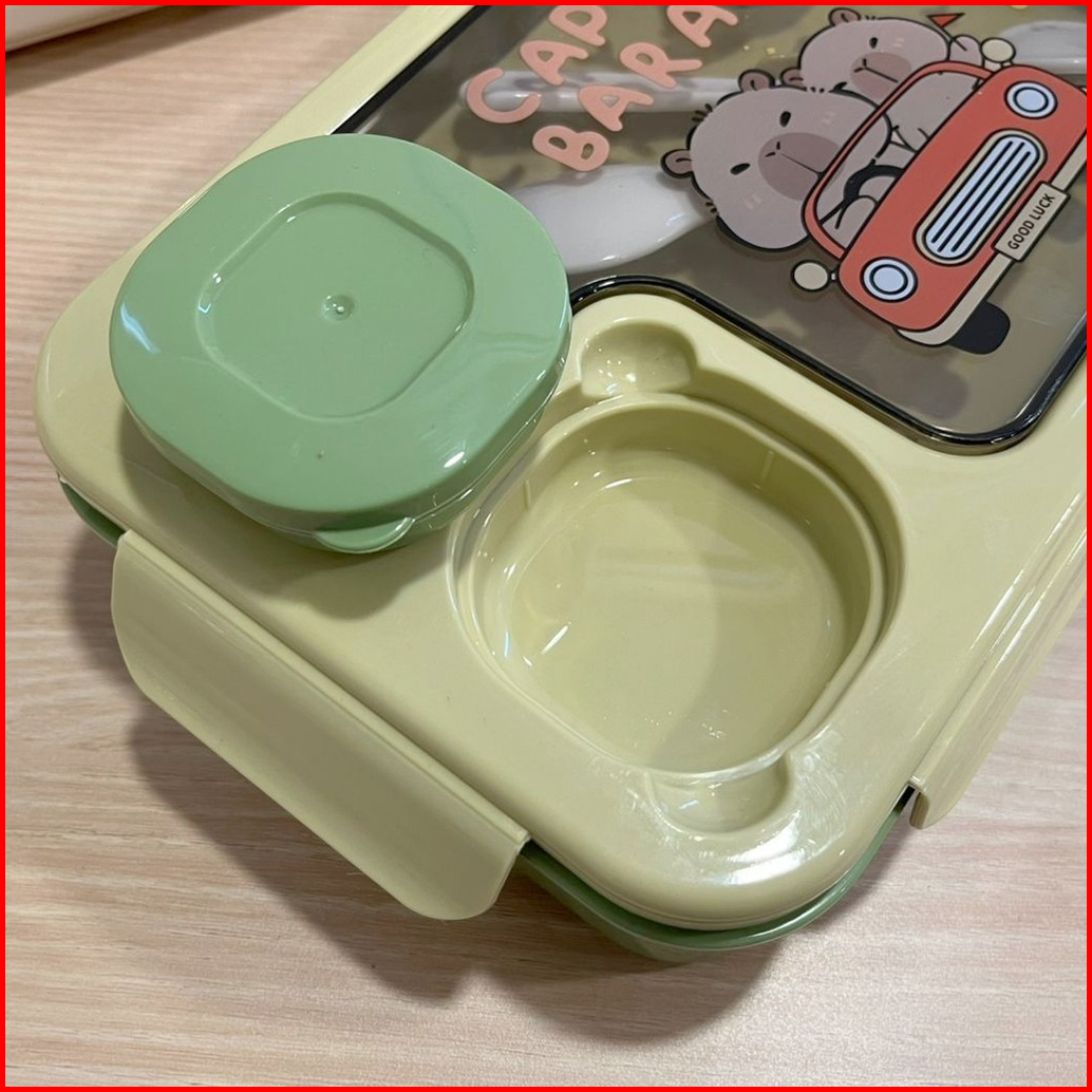 Lunch Box Set Karakter Capybara 3 Sekat Kotak Makan Anak Sekolah Kotak Bekal