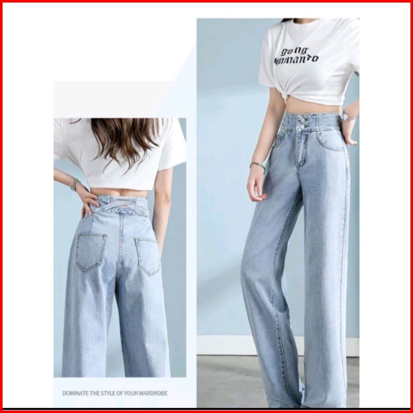 Celana Panjang Highwaist Kulot Jeans Wanita Celana Kulot Jeans Pinggang Silang