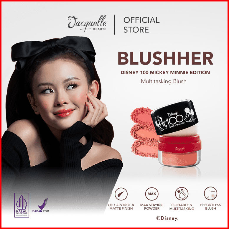 Jacquelle Blushher Blush On - Disney Mickey Minnie - Blush Pipi Pigmented Buildable - With Puff Cermin
