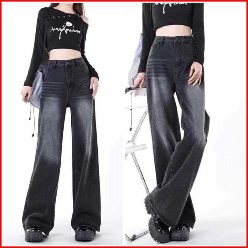 Highwaist Baggy Jeans Hangover Wanita-celana Kulot Jeans Loose Pants Gombrong Highwaist Wanita