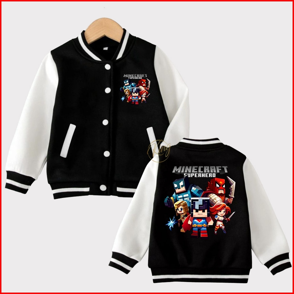 Jaket Varsity Baseball Minecraft Anak 2-16 Tahun Jaket Anak Laki Laki Perempuan