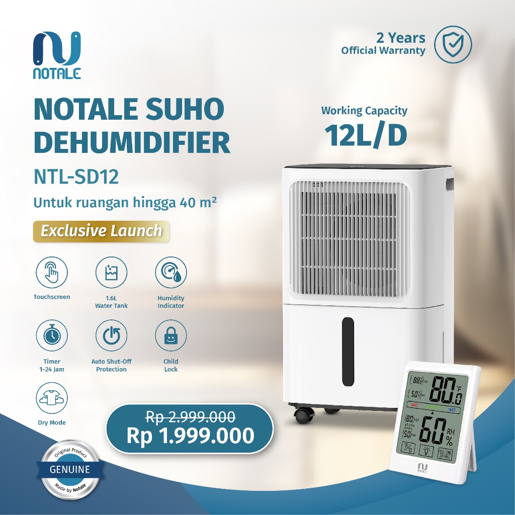Notale Suho Dehumidifier 12L/Hari Serap Kelembaban dan Pengering Udara Anti Jamur