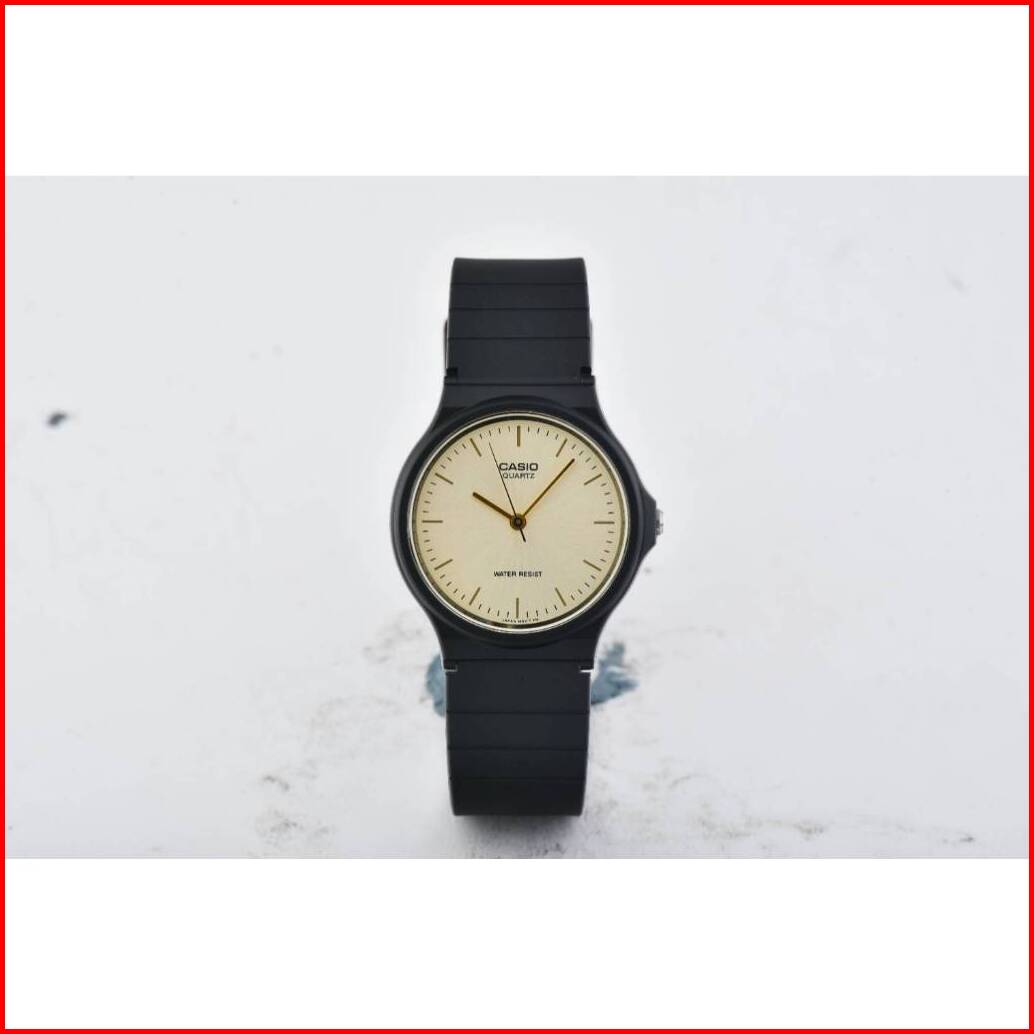 Prj Jam Tangan Analog Casio Standard Mq-24-9eldf Mq24 Champagne Dial Black Resin Band