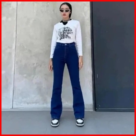 Highwaist Cutbray Jeans Wanita Denim Premium