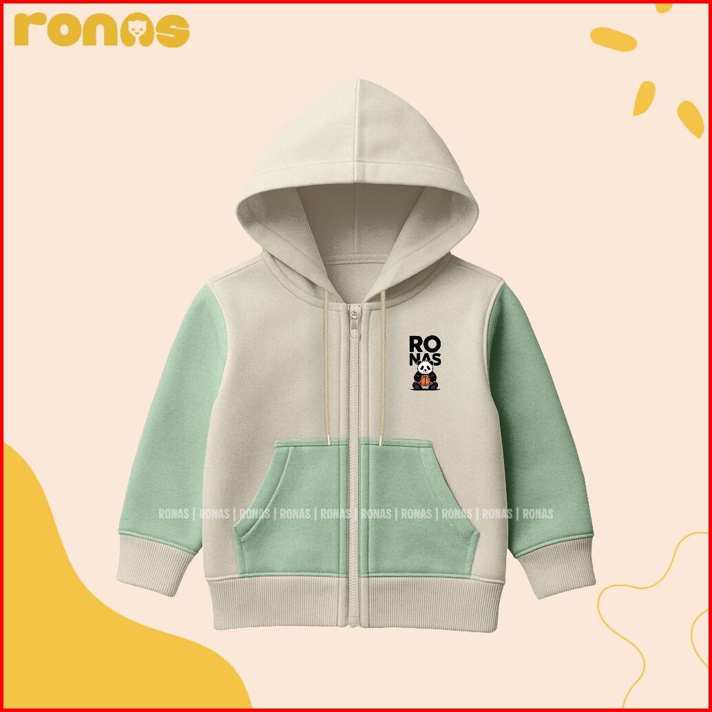 Ronas - Jaket Zipper Combi Anak Sablon Panda Basket Usia 3-13 Tahun Bahan Fleece Tebal