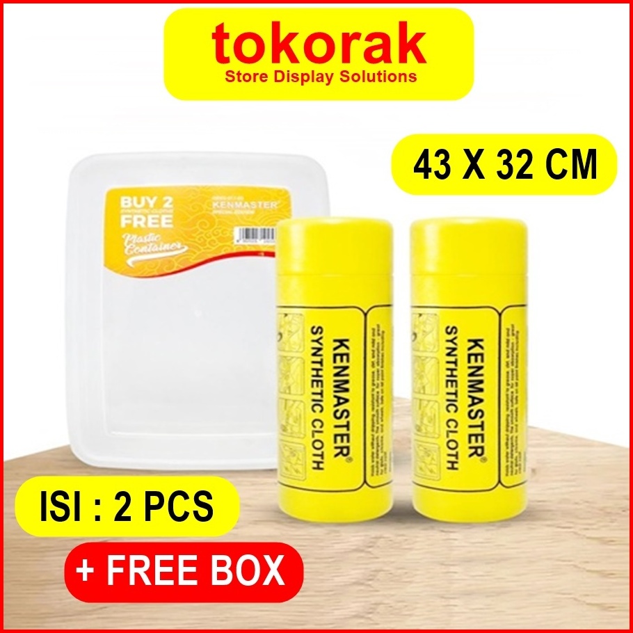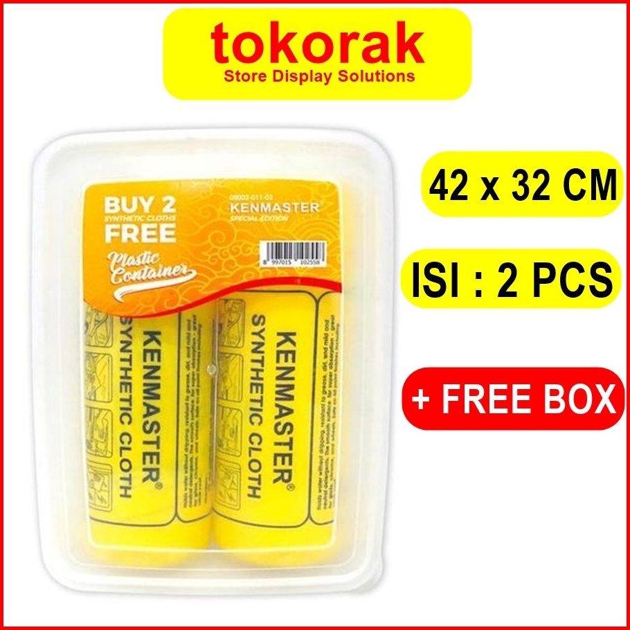 Kenmaster Plas Chamois Yellow 2 Pcs Bonus Container 43 X 32 Kain Lap Kanebo Mobil Motor Besar 43x32 Paket 2pcs Free Box