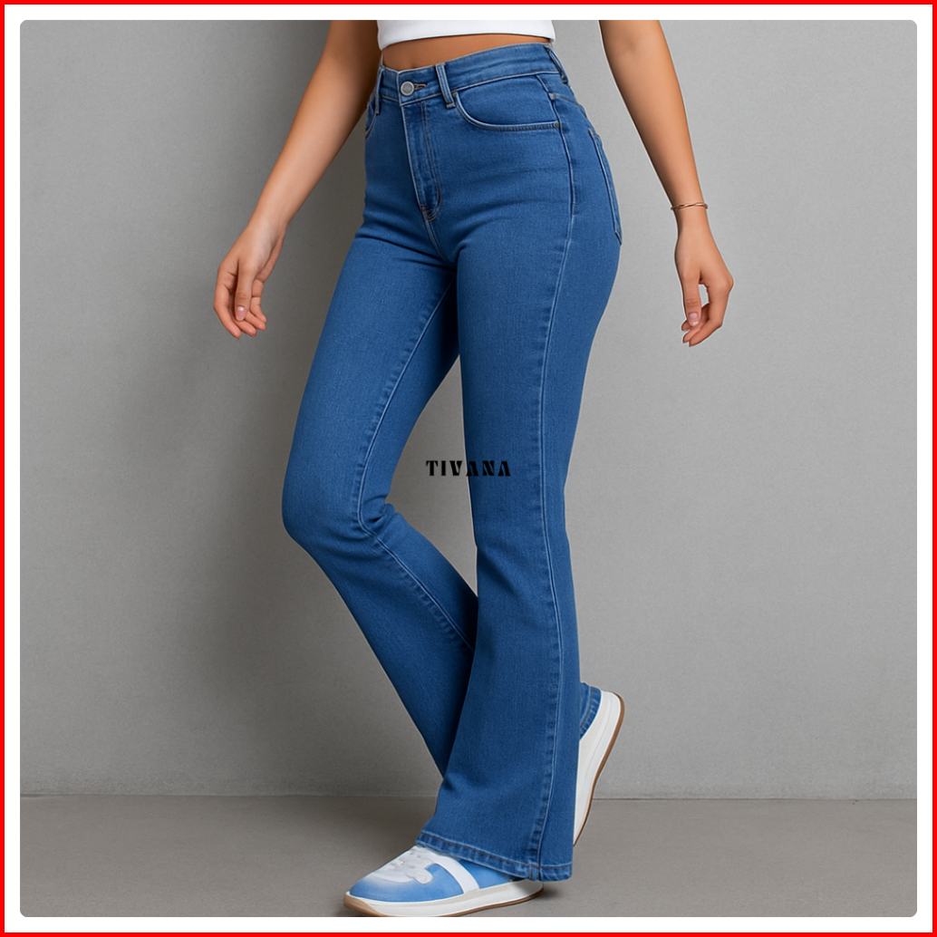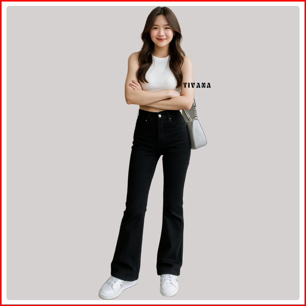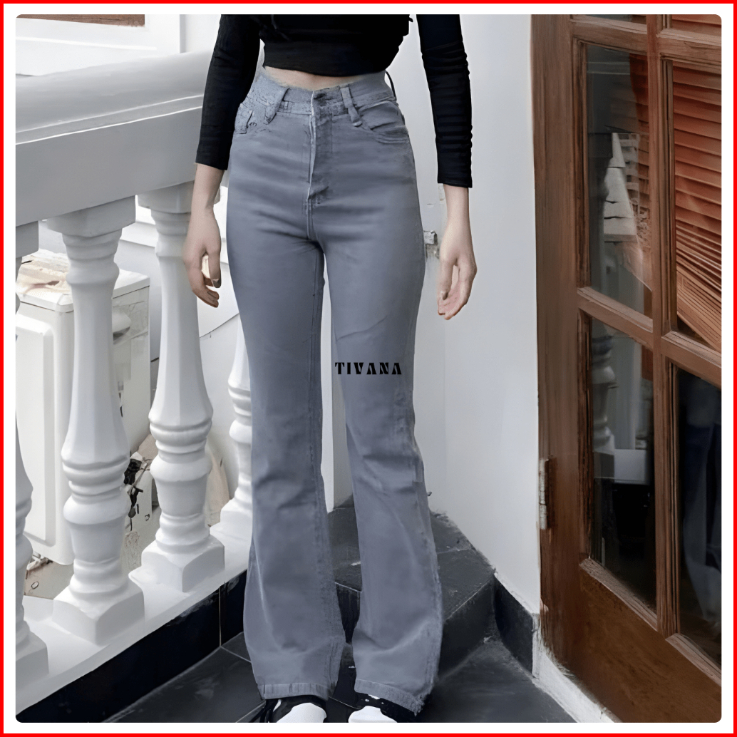 Tivana Highwaist Cutbray Jeans Wanita Wanita Kekinian Stretch Soft Celana Panjang Denim Cutbray