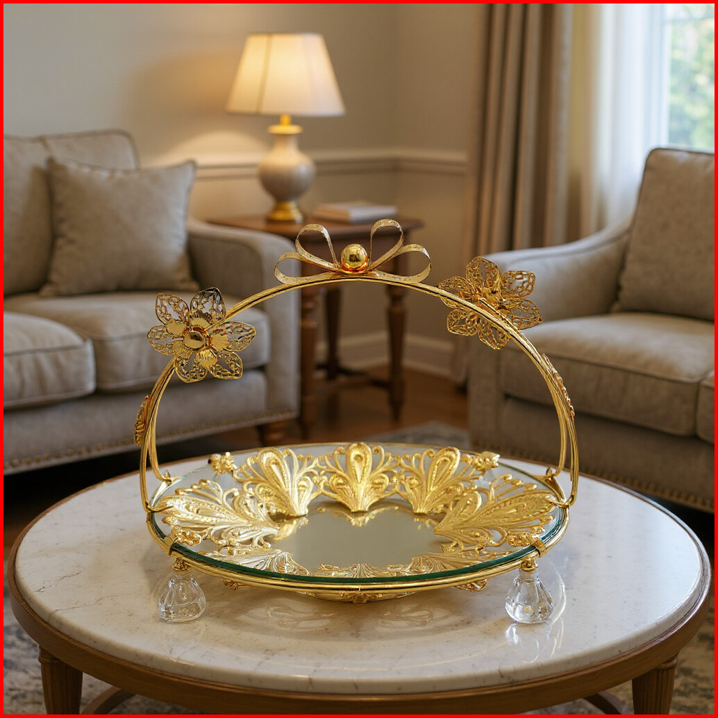 Piring Saji Aesthetic Wadah Tempat Aqua Nampan Kaca Mewah Hiasan Meja Ruang Tamu Nampan Aesthetic