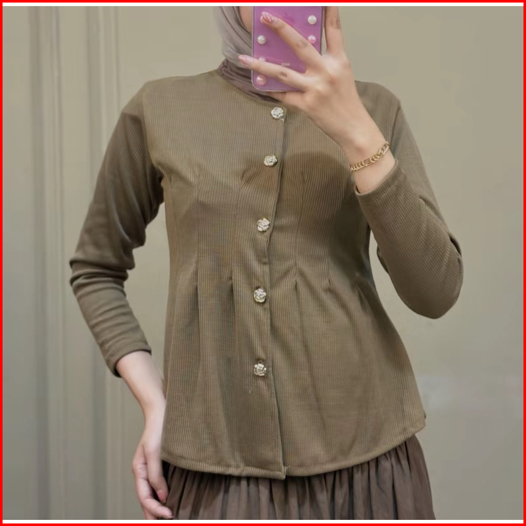 Atasan Peplum Fit Body Knit Blouse Lengan Panjang Wanita Cardigan Wanita Terbaru