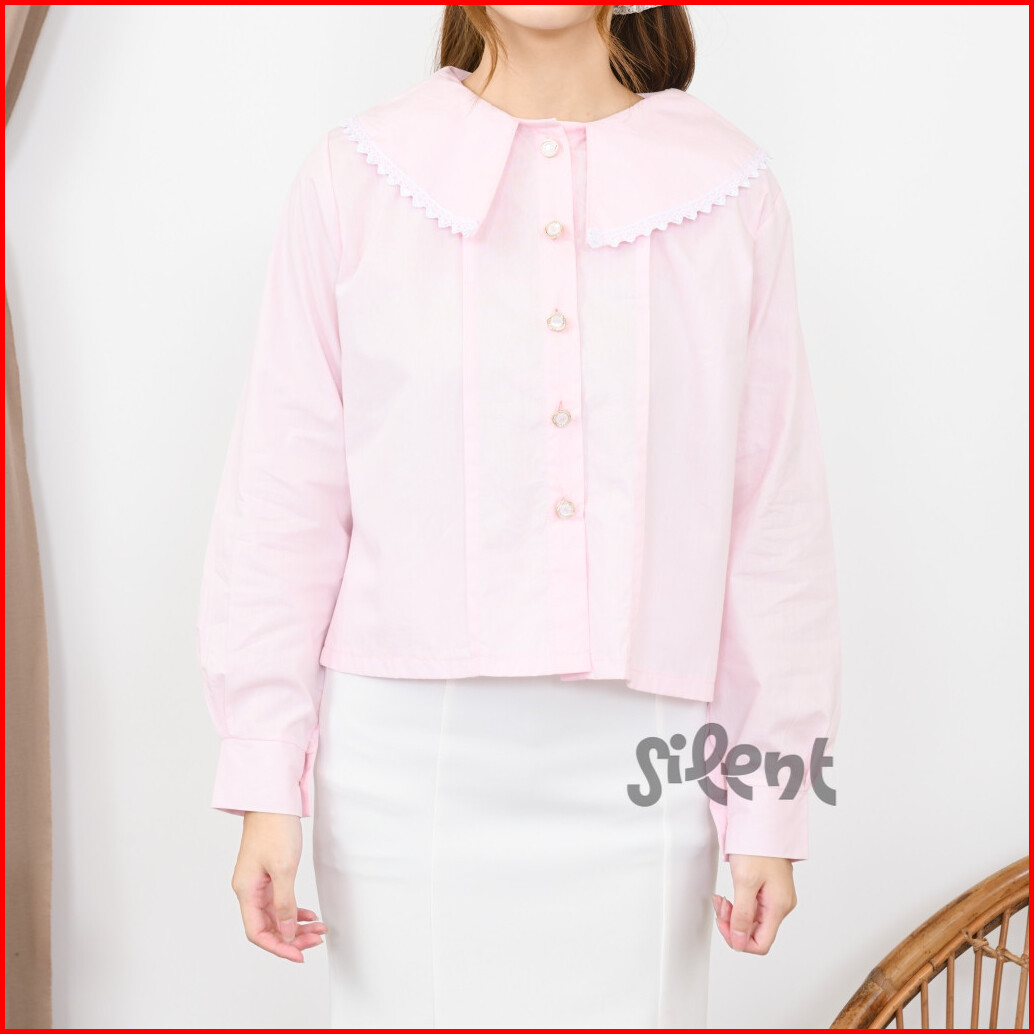 Msilent - Lyra Blouse - Atasan Blus Wanita Polos Lengan Panjang Kerah Besar Renda Lucu Minimalis
