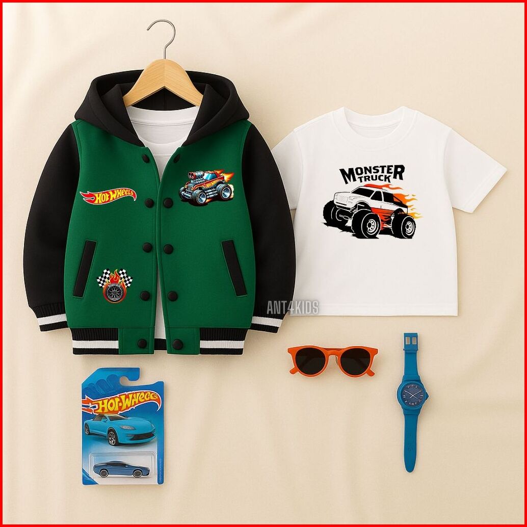Jaket Varsity Baseball Anak Laki Laki Hot Wheels Free Kaos Usia 2 - 12 Tahun
