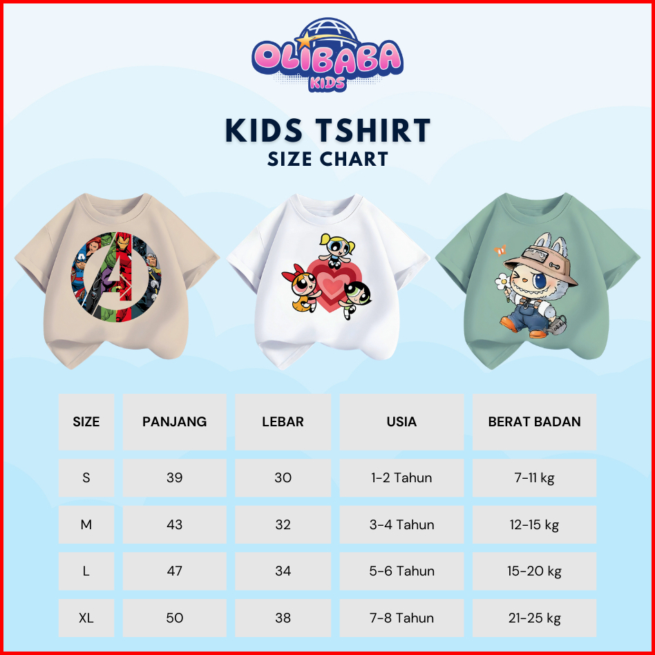 Olibaba - Kaos Anak Premium 1-12 Tahun 100 Katun Tebal 24s Baju Anak Laki Laki Perempuan - C91