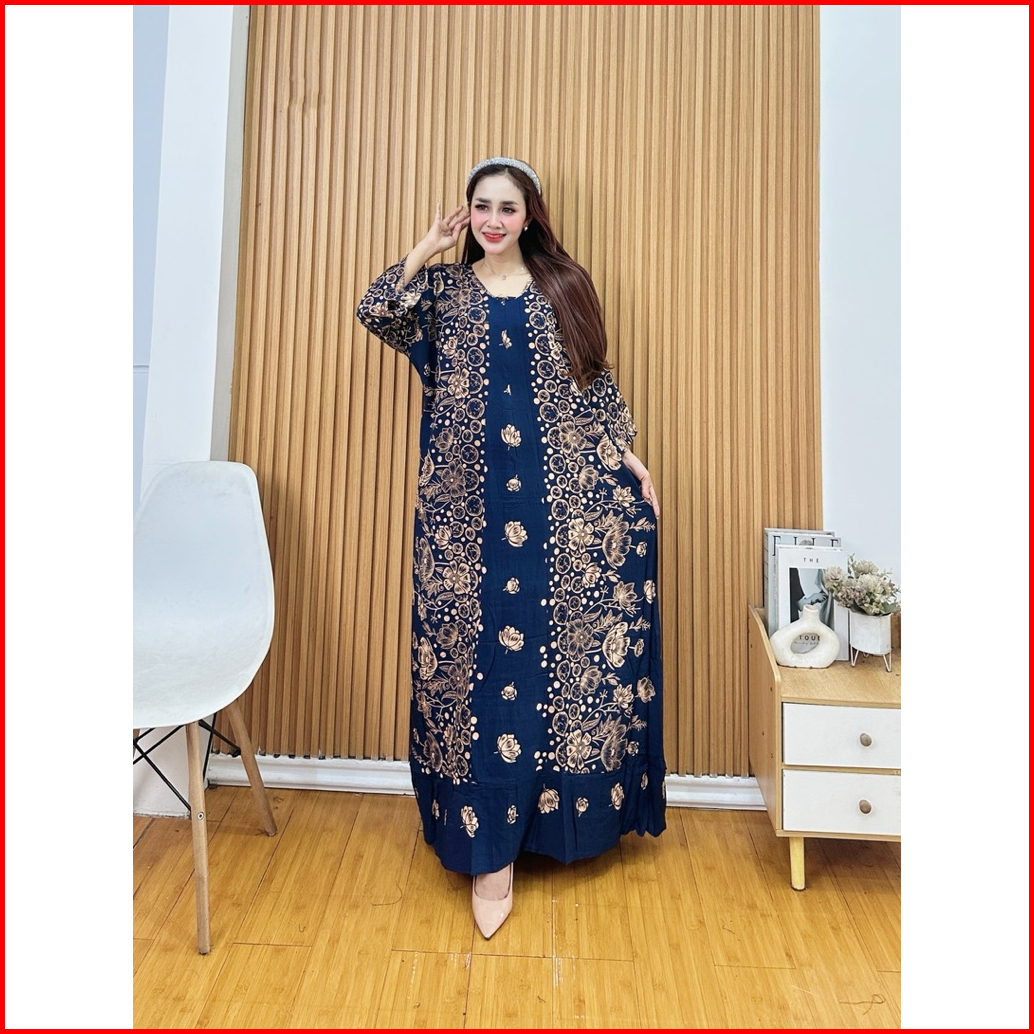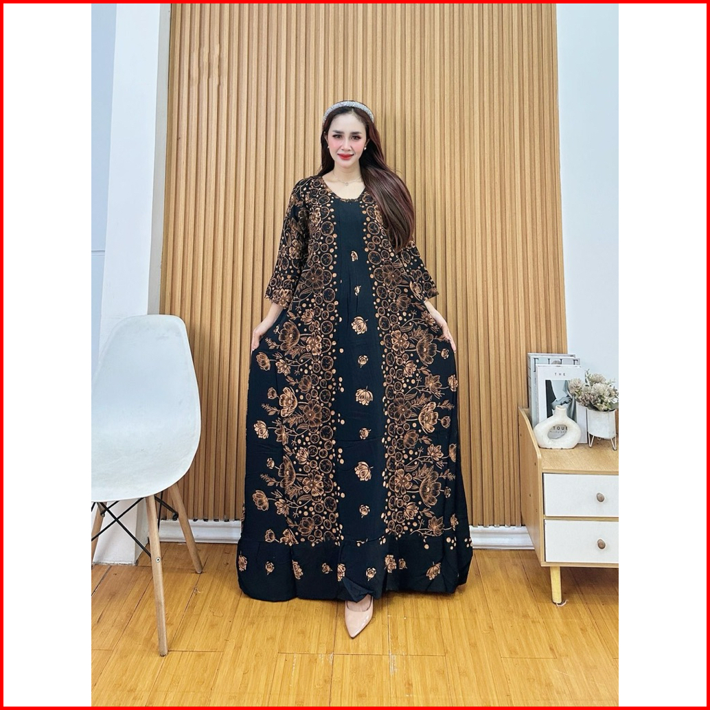 Dress Sasa Kombinasi Lengan 3 4 Jumbo Gamis Rayon Premium Jumbo Muat Bb 100kg Daster Jumbo Adem