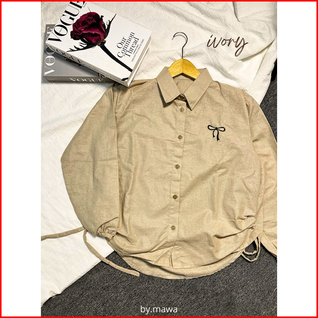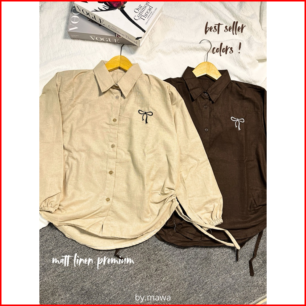 By.mawa - Yolla Shirt - Atasan Wanita Katun Linen Premium - Kemeja Serut - Atasan Katun Linen Polos