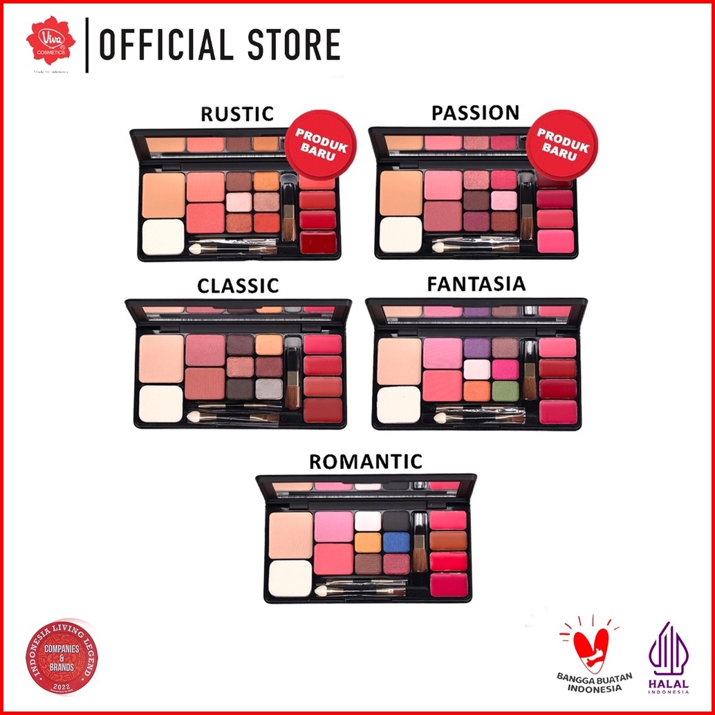 Viva Queen Make Up Kit Classic - 4 In 1 Two Way Cake Blush On Eye Shadow Lipstick Tersedia 5 Koleksi Warna