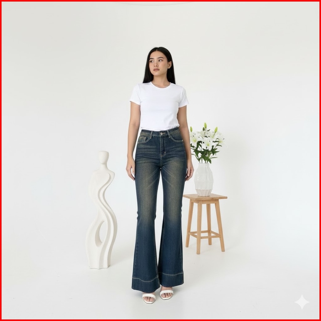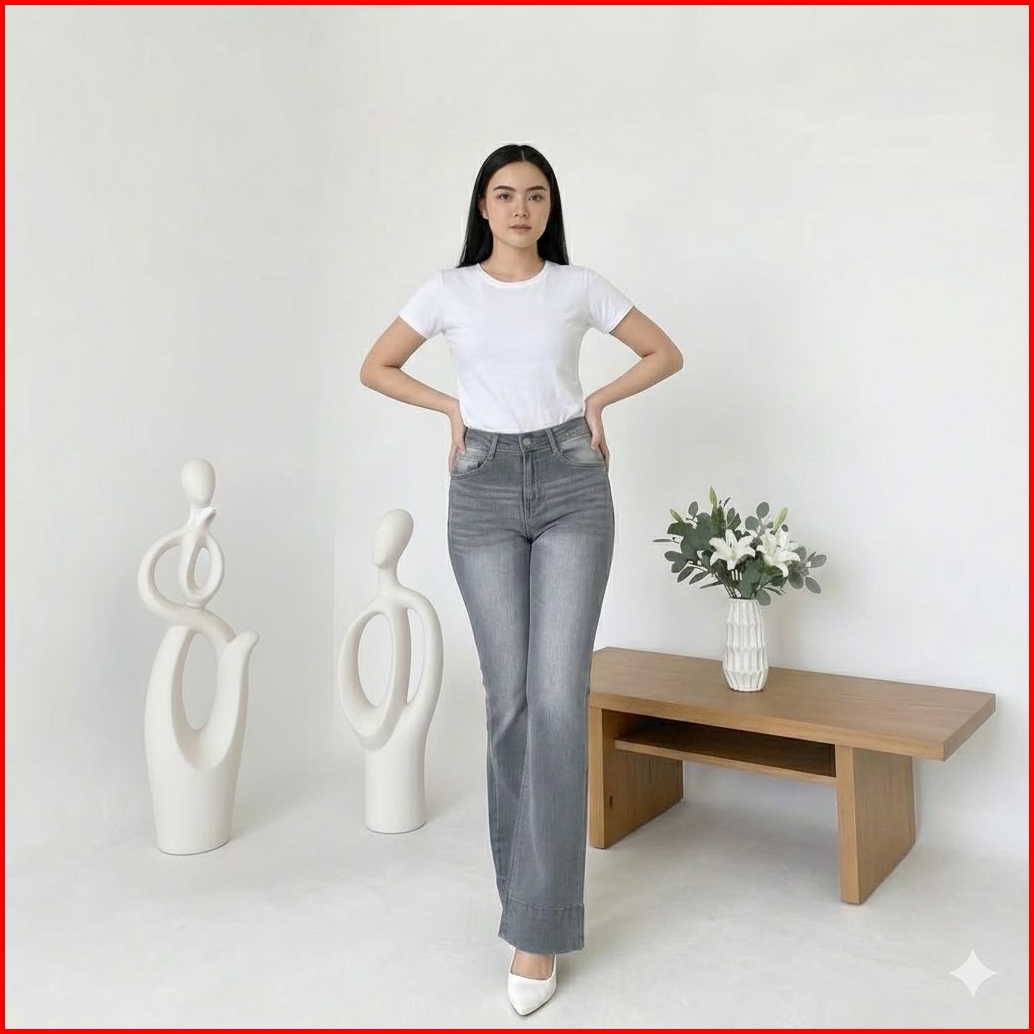 Onstyle Cutbray Jeans Higwaist Lipat Besar Jeans Strech Kekinian Wanita Tinggi Terbaru