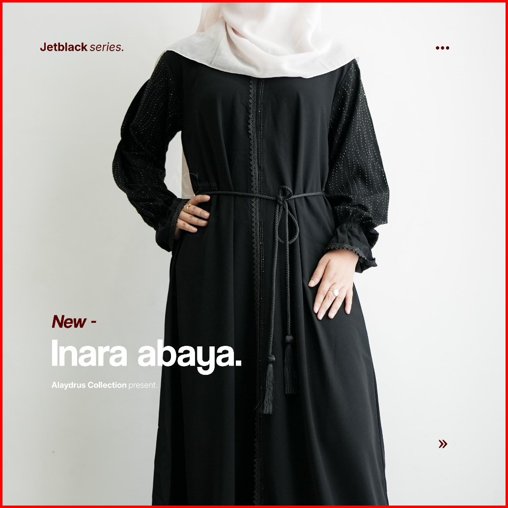Alaydrus Collection Abaya Hitam Turkey Inara Gamis Syari Muslimah Bahan Jetblack