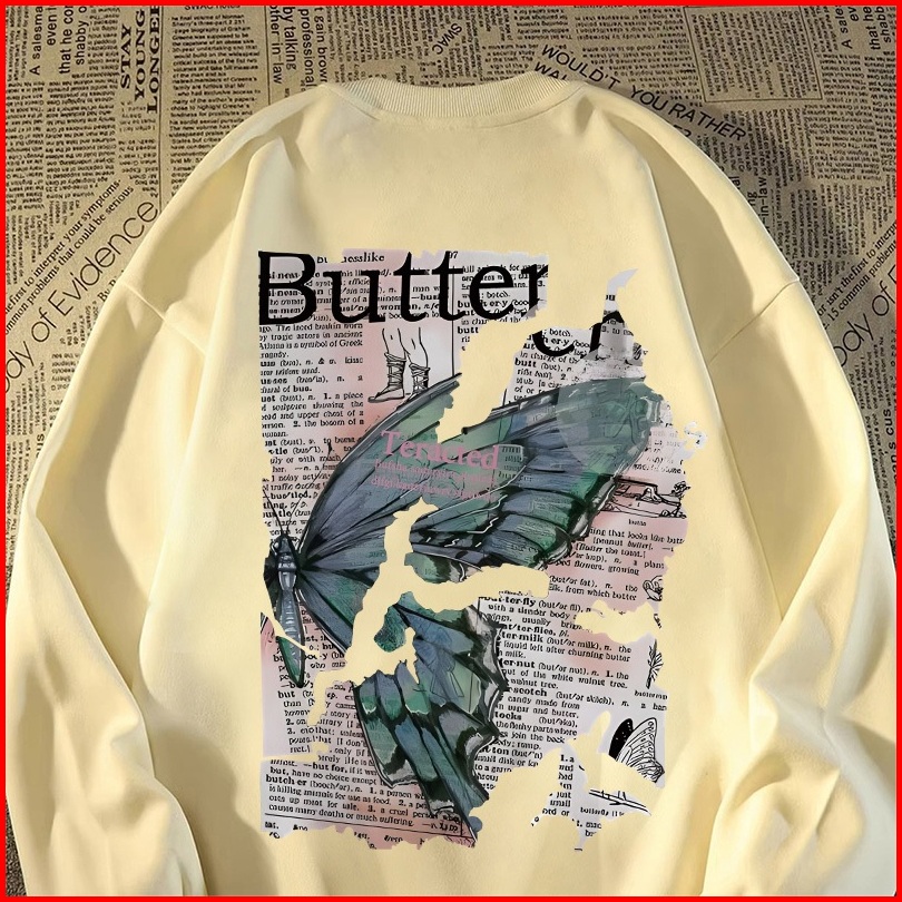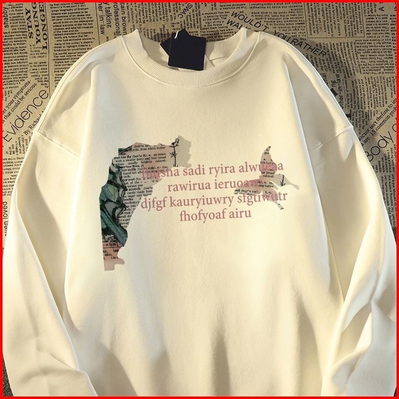 Fastfash Crewneck Sweater Pria Dan Wanita Lengan Panjang Lengan Panjang Oversize Kupu-kupu Retro Trendi Merusak Pola Kor