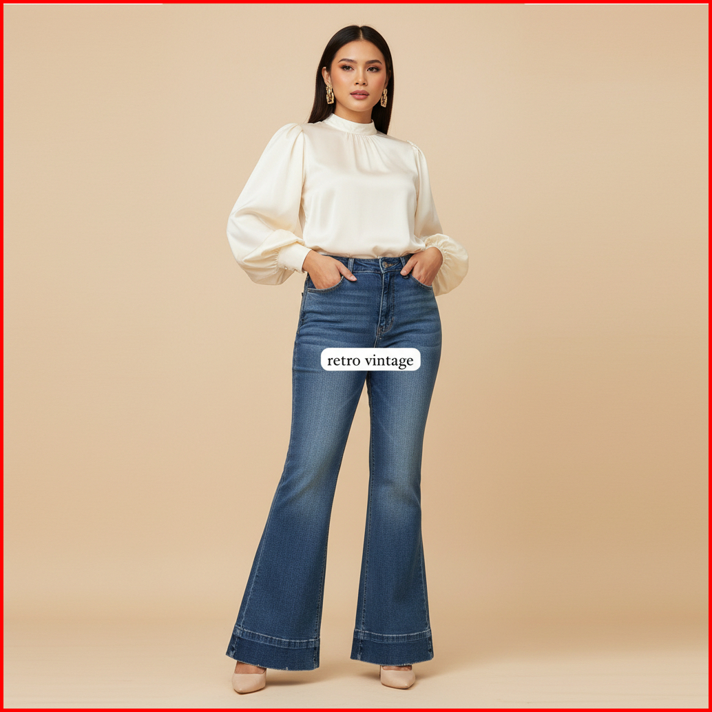 Celana Jeans Wanita Highwaist Cutbray Jennie Vintage Model Lipat Stretch Nyaman