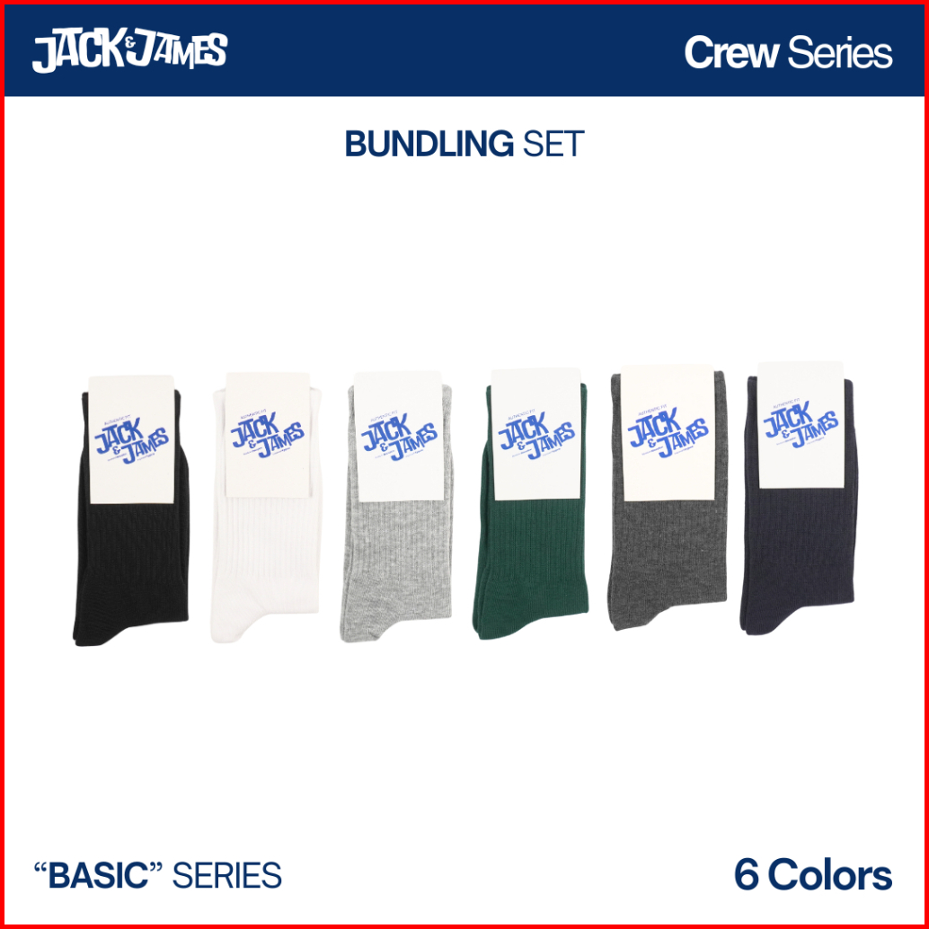 Jack James Paket Bundling 6 Warna Kaos Kaki Crew Oldschool Polos Basic Series
