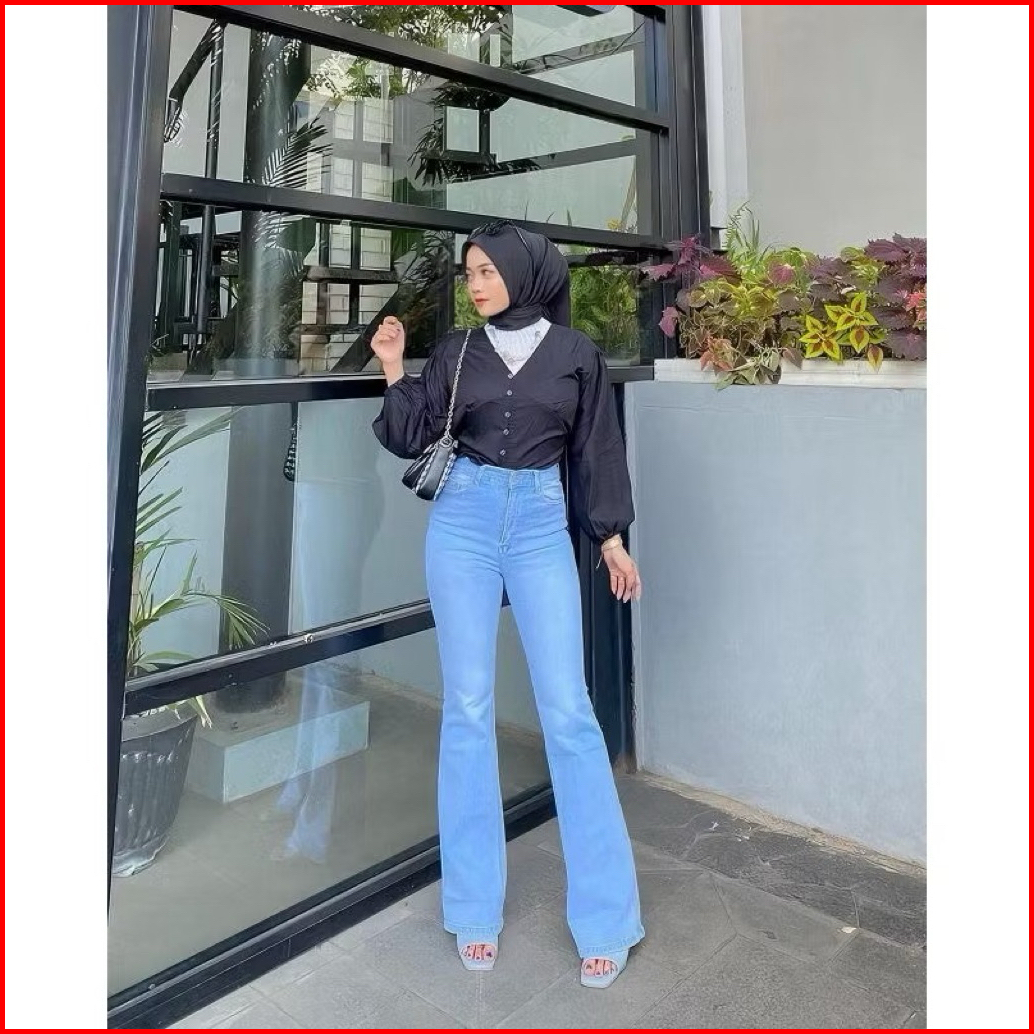 Nofan Jeans - Celana Jeans Cutbray Polos Highwaist Wanita Panjang Premium Quality